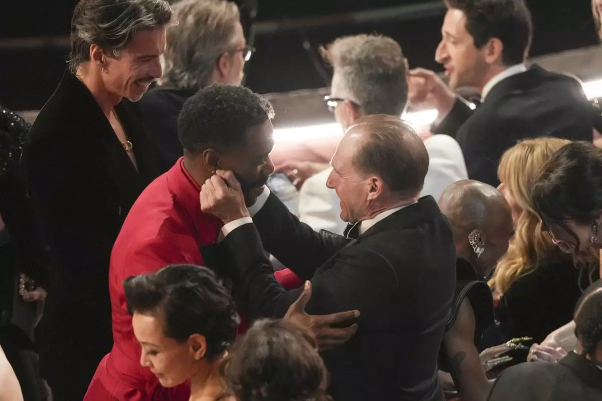 Colman Domingo, left, and Ralph Fiennes in the audience during the Oscars on Sunday, March 2, 2025, at the Dolby Theatre in Los Angeles. (AP Photo/Chris Pizzello)
