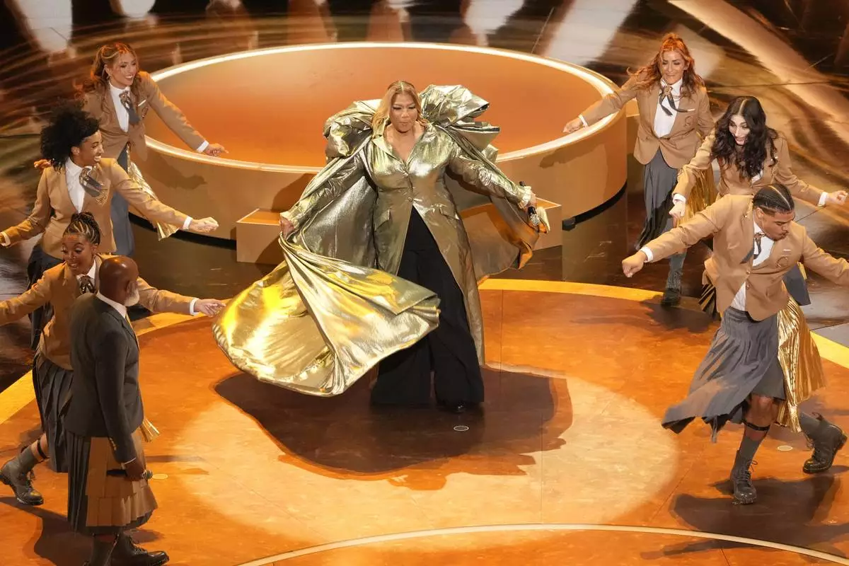 Queen Latifah, center, performs "Ease on Down the Road" during the Oscars on Sunday, March 2, 2025, at the Dolby Theatre in Los Angeles. (AP Photo/Chris Pizzello)
