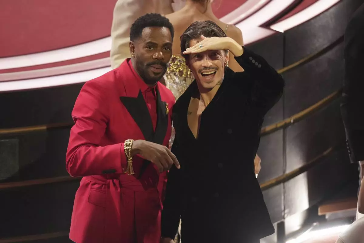 Colman Domingo, left, and Raul Domingo in the audience during the Oscars on Sunday, March 2, 2025, at the Dolby Theatre in Los Angeles. (AP Photo/Chris Pizzello)