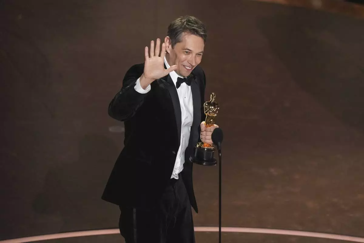 Sean Baker accepts the award for best director for "Anora" during the Oscars on Sunday, March 2, 2025, at the Dolby Theatre in Los Angeles. (AP Photo/Chris Pizzello)