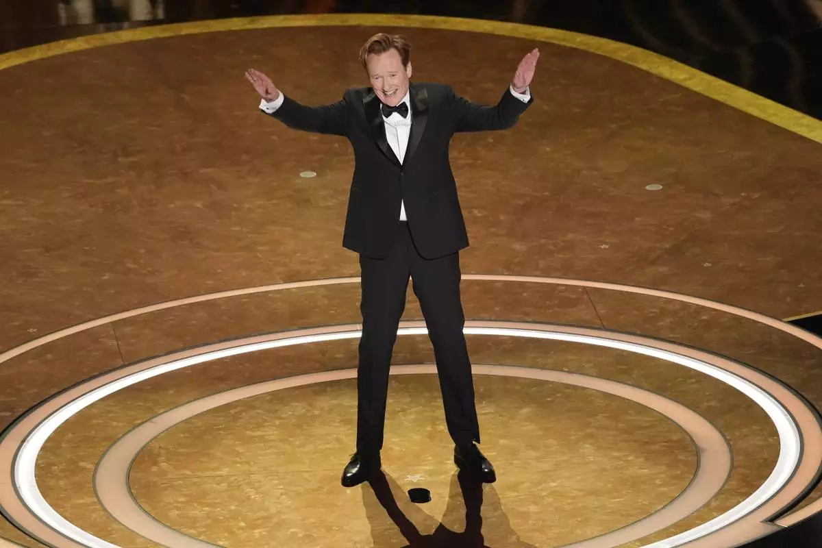 Host Conan O'Brien speaks during the Oscars on Sunday, March 2, 2025, at the Dolby Theatre in Los Angeles. (AP Photo/Chris Pizzello)