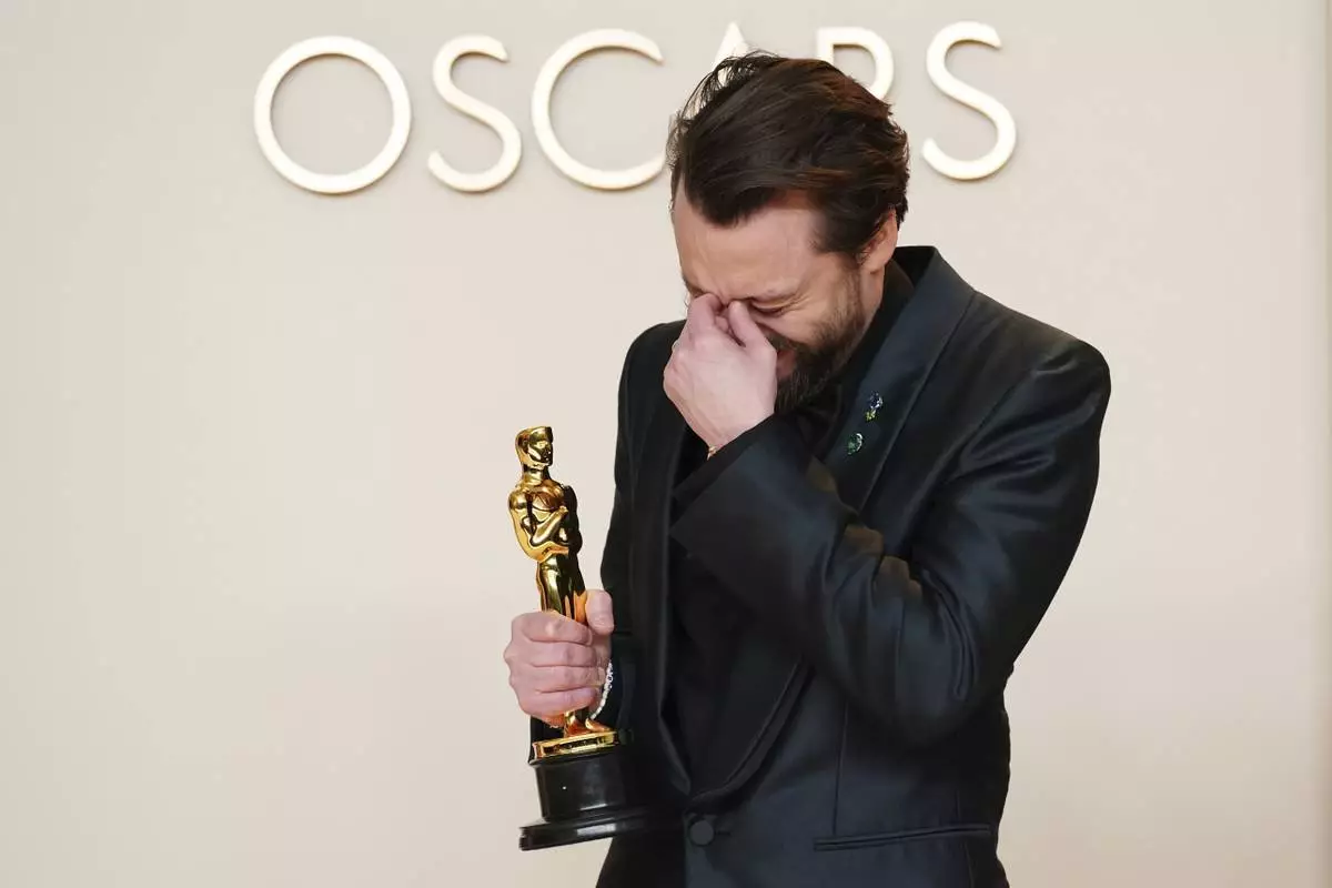 Lol Crawley, winner of the award for best cinematography for "The Brutalist," poses in the press room at the Oscars on Sunday, March 2, 2025, at the Dolby Theatre in Los Angeles. (Photo by Jordan Strauss/Invision/AP)