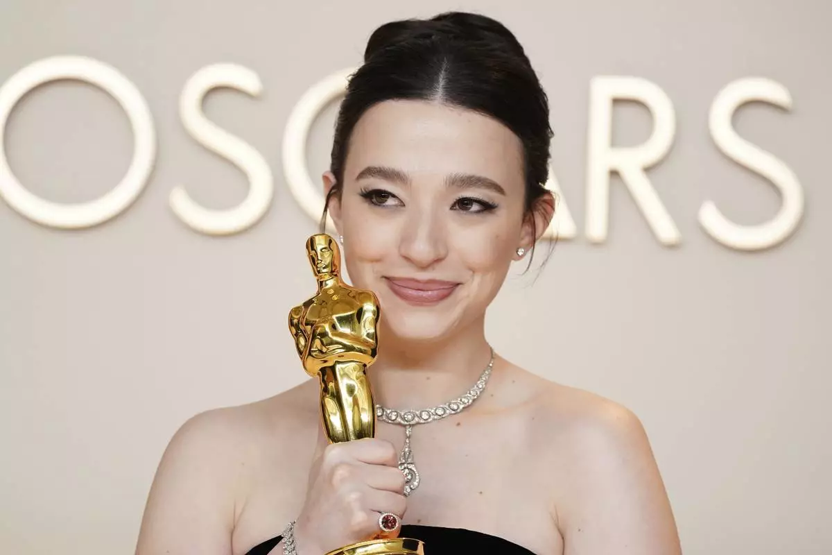 Mikey Madison, winner of the award for best performance by an actress in a leading role for "Anora," poses in the press room at the Oscars on Sunday, March 2, 2025, at the Dolby Theatre in Los Angeles. (Photo by Jordan Strauss/Invision/AP)