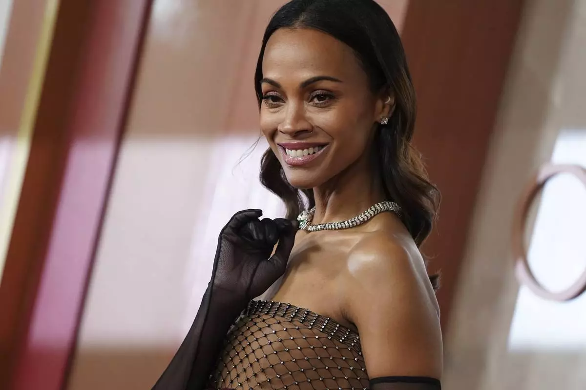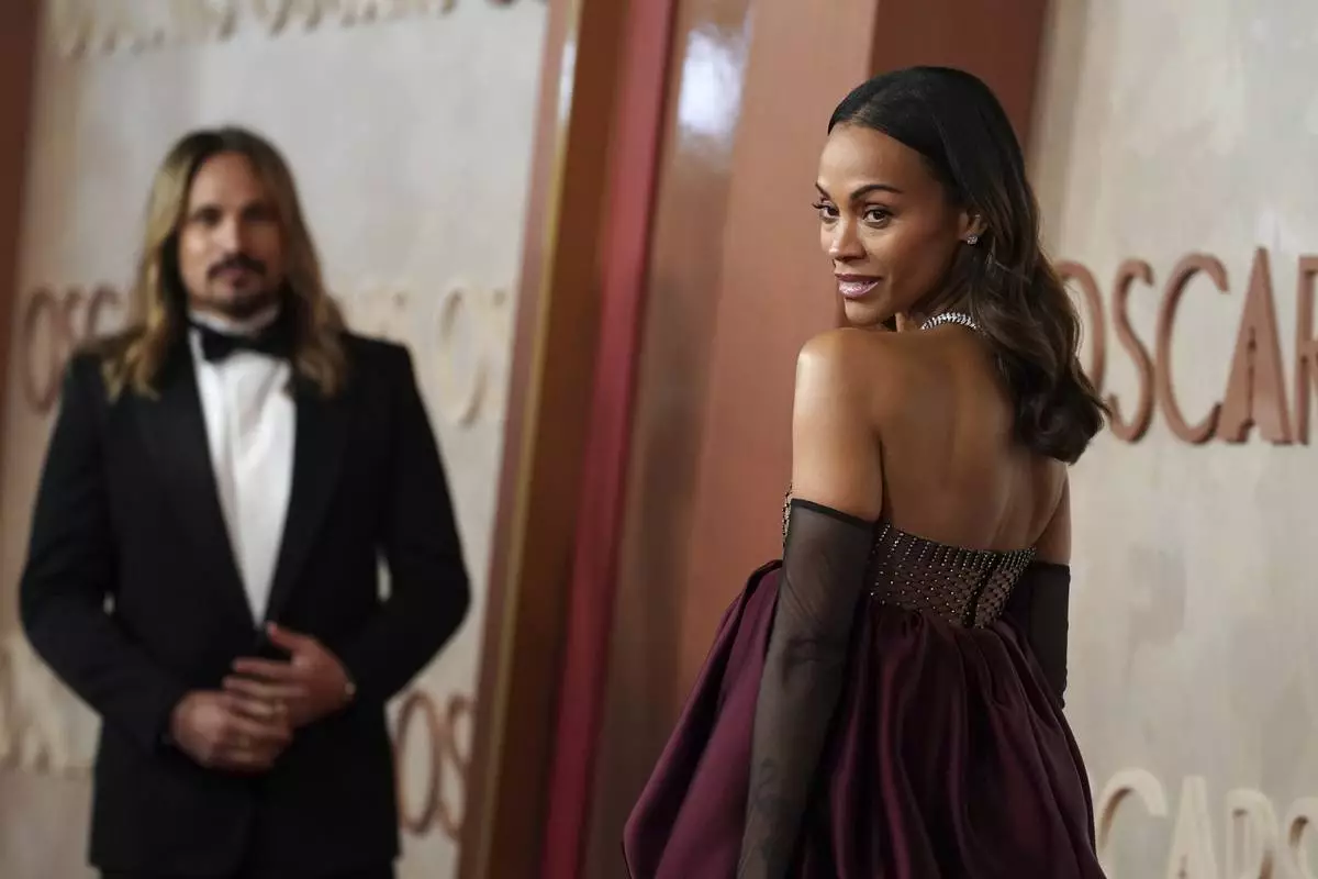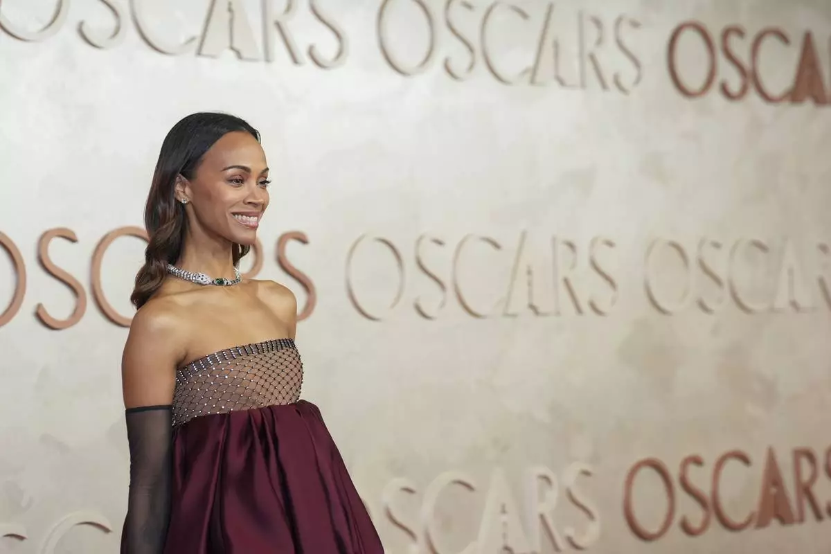 Zoe Saldana arrives at the Oscars on Sunday, March 2, 2025, at the Dolby Theatre in Los Angeles. (AP Photo/Jae C. Hong)