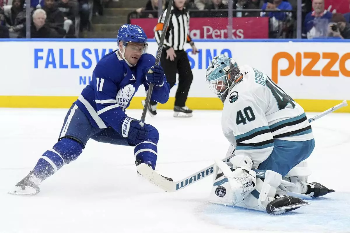 After William Nylander scored for Toronto in the third round of the shootout and Toffoli tied it, Tavares was denied by Georgiev before Zetterlund won it for the Sharks.