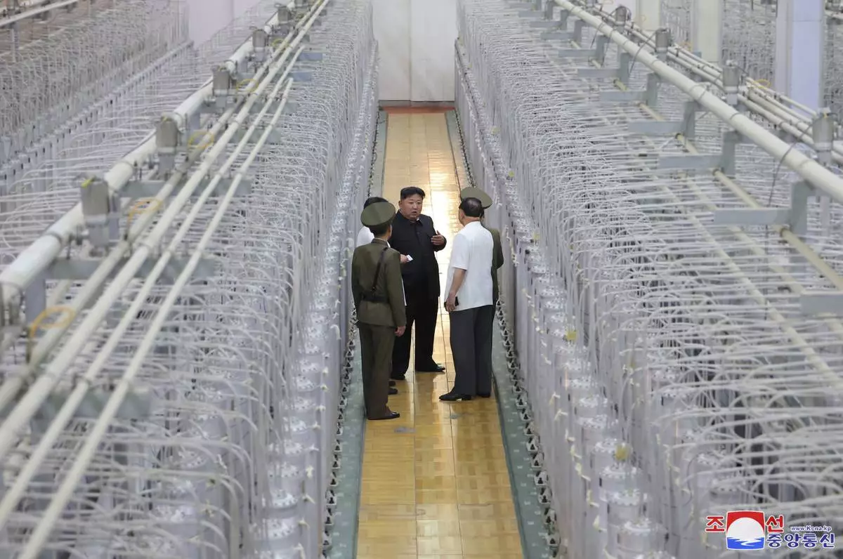 FILE - This undated photo provided on Sept. 13, 2024, by the North Korean government shows its leader Kim Jong Un, center, on an inspecting visit at what they say is an institute of nuclear weapons and a facility for nuclear materials at an undisclosed location in North Korea. Independent journalists were not given access to cover the event depicted in this image distributed by the North Korean government. The content of this image is as provided and cannot be independently verified. Korean language watermark on image as provided by source reads: "KCNA" which is the abbreviation for Korean Central News Agency. (Korean Central News Agency/Korea News Service via AP, File)