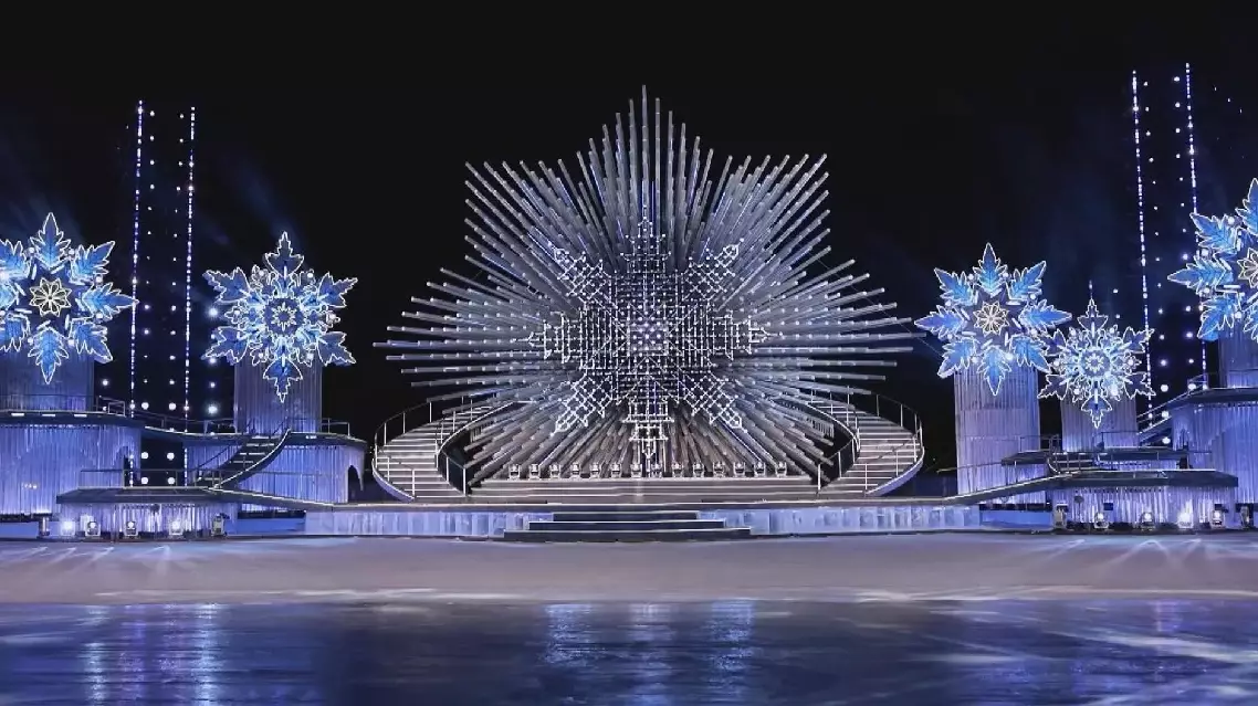 At the Harbin Ice and Snow World, the production team has constructed a new main stage designed specifically for the gala. Framed by ten snowflake-shaped structures, the "ice stage" is intentionally compact and immersive, standing in contrast to the surrounding monumental ice architecture.