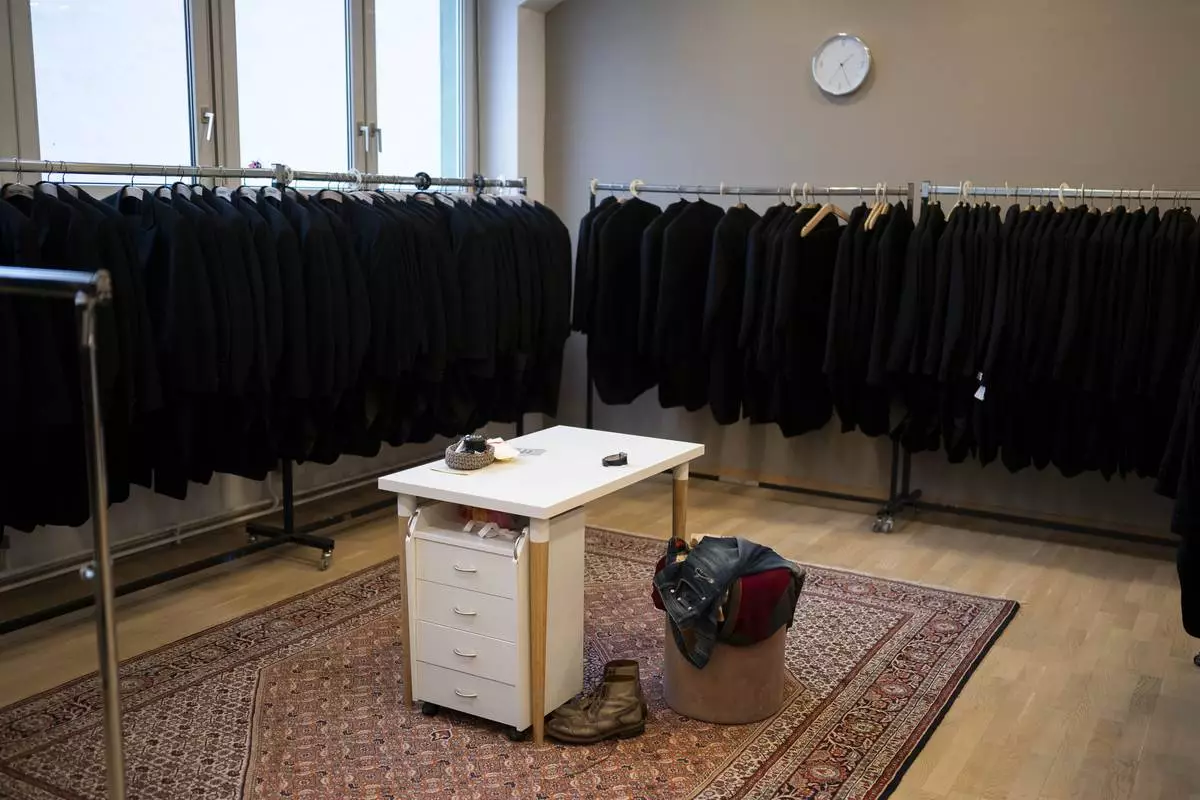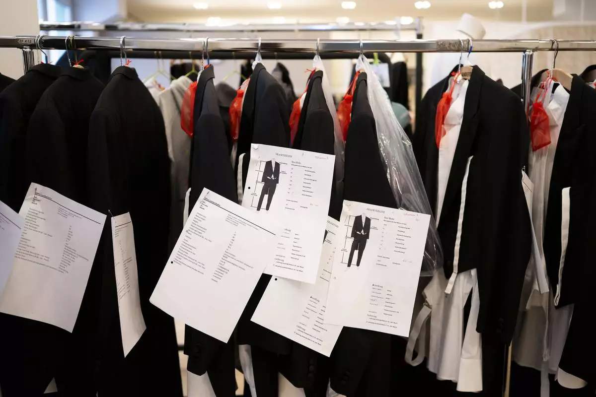 A man's clothes lie in one of the fitting rooms of Lambert Hofer, a renowned costume workshop in Vienna, Austria, Wednesday, Febr 26, 2025. (AP Photo/Denes Erdos)