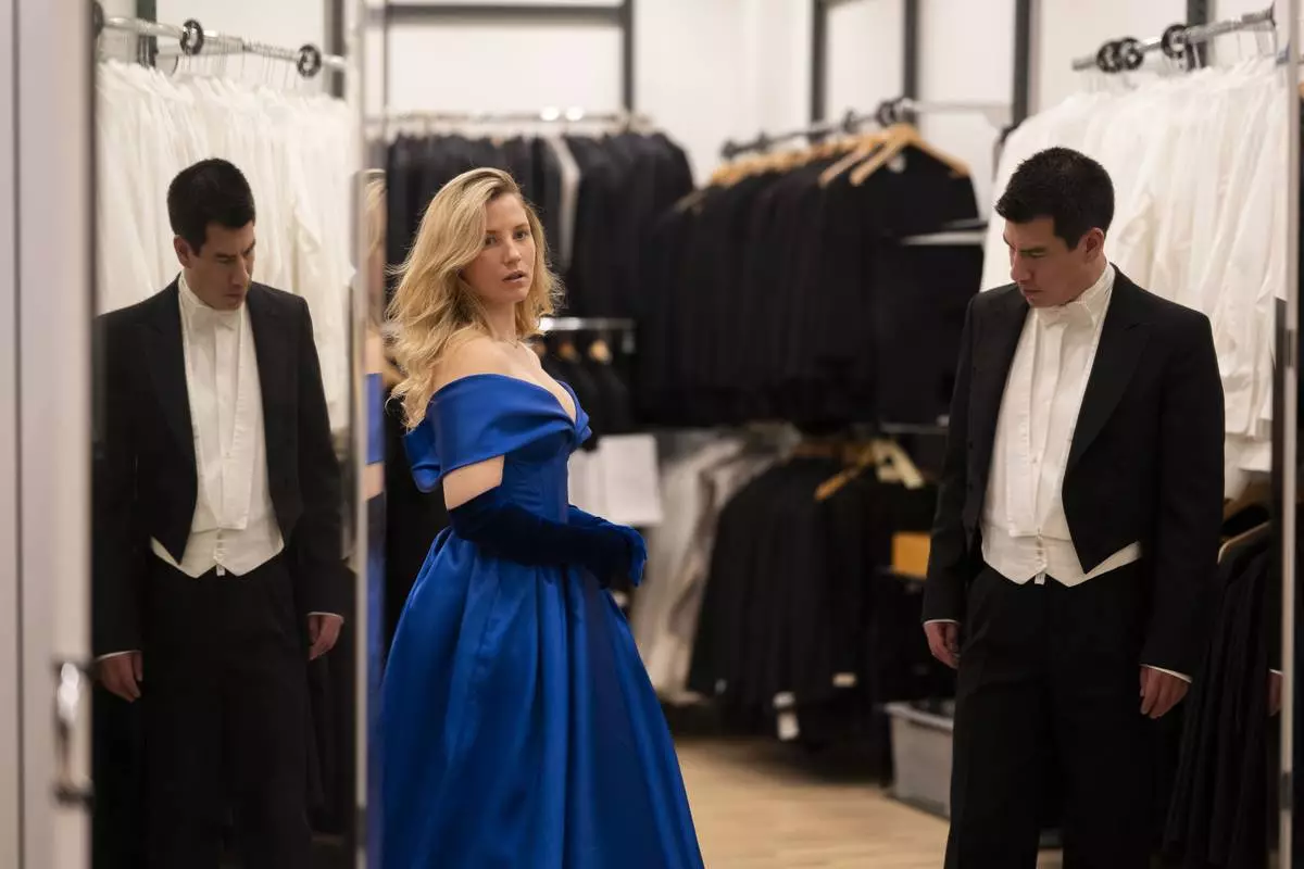 A young couple watch themselves in the mirror during their fitting in Lambert Hofer, a renowned costume workshop in Vienna, Austria, Wednesday, Febr 26, 2025. (AP Photo/Denes Erdos)