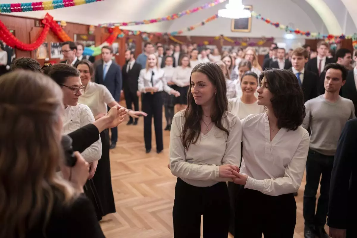 Young people learn to dance waltz during a rehearsal in the Elmayer Dance School in Vienna, Austria, Sunday, Febr 23, 2025. (AP Photo/Denes Erdos)