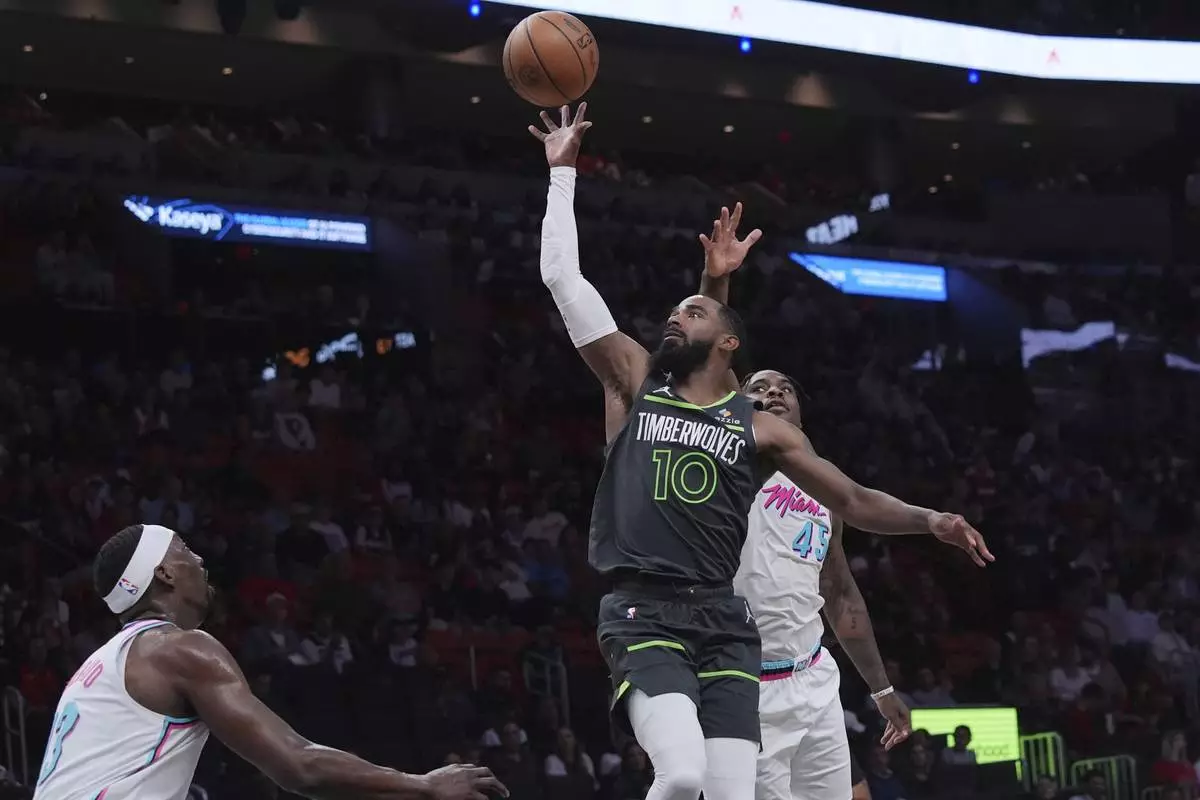 MIAMI (AP) — Mike Conley, Naz Reid and Donte DiVincenzo each scored 15 points each and the Minnesota Timberwolves beat the Miami Heat 106-104 on Friday night for their fourth straight victory.