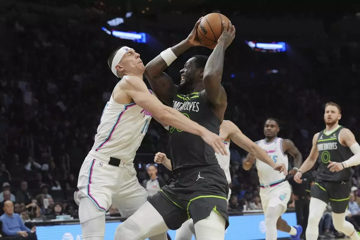 Edwards split two free throws with eight seconds left to put Minnesota ahead 106-101. Duncan Robinson’s 3-pointer with three seconds got Miami within two.