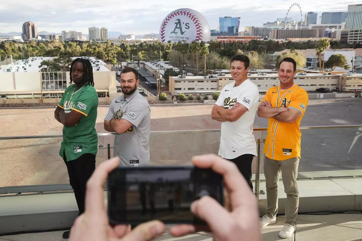 LAS VEGAS (AP) — The Athletics will play in Northern California for at least the next three seasons, but will also represent their future home in Las Vegas and brought four of their star players to drive home that point.