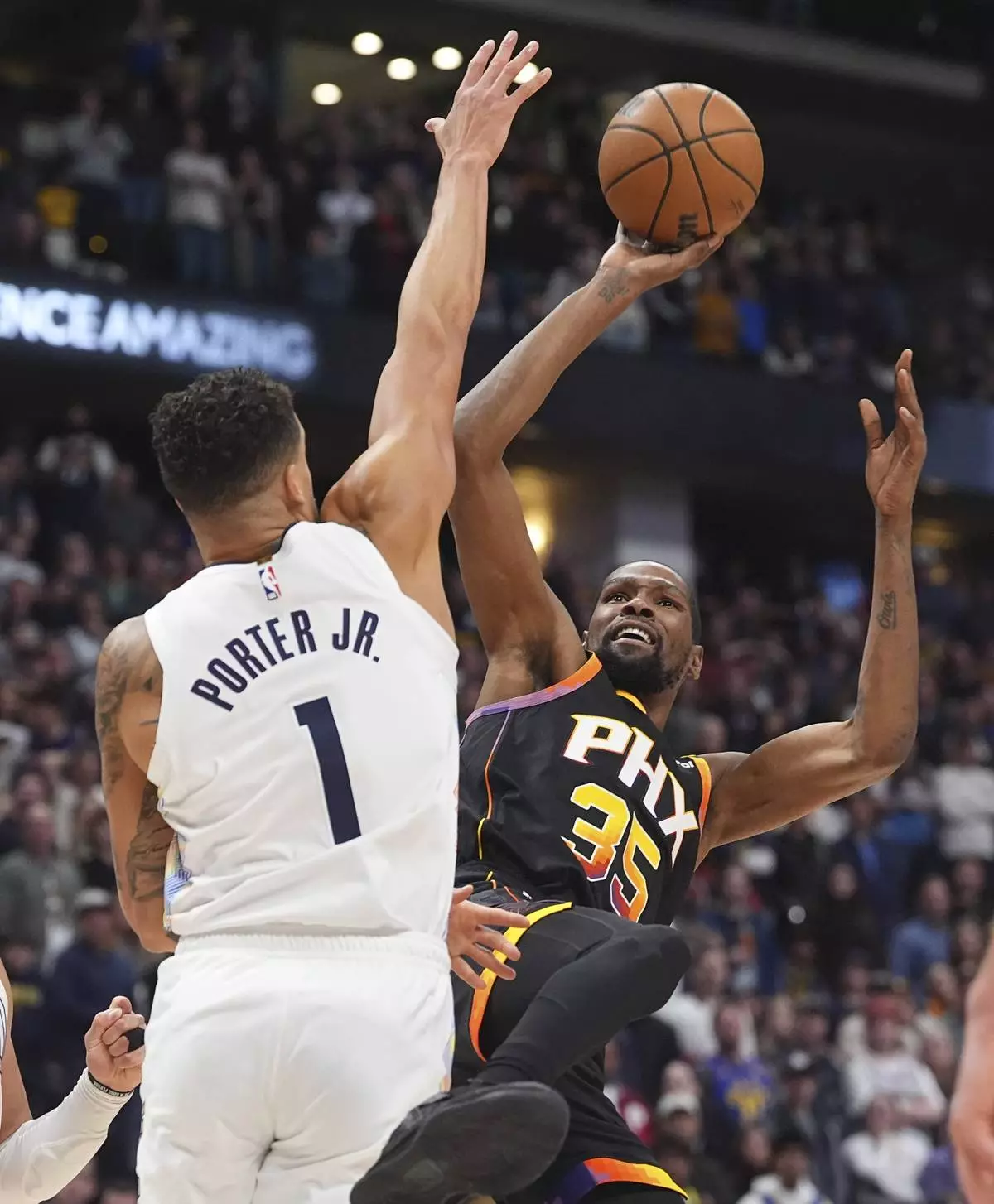 Aaron Gordon made a career-high seven 3-pointers and had 27 points for Denver. Kevin Durant scored 29 points for Phoenix, hitting a 3-pointer at regulation buzzer to send it into overtime.
