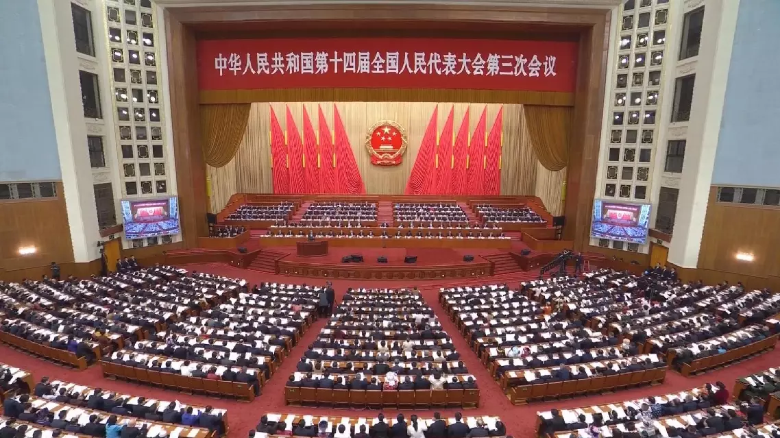 Zhao Leji, chairman of the 14th NPC Standing Committee, delivered the report.