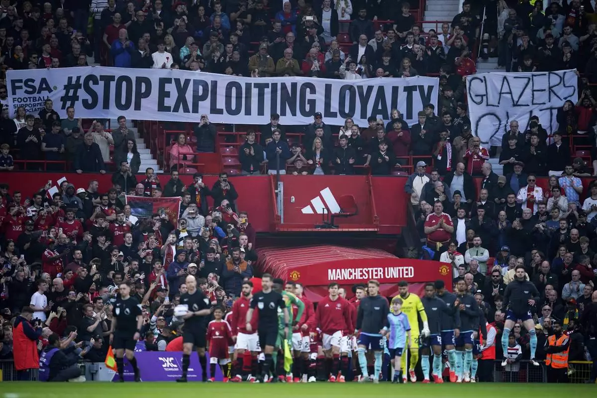 Even after United took the lead through a first-half goal from captain Bruno Fernandes, cheers were quickly followed by chants of “Glazers out!”