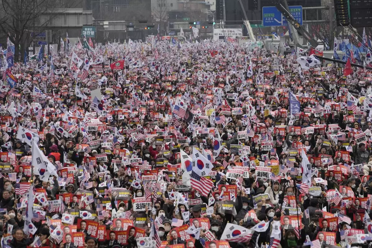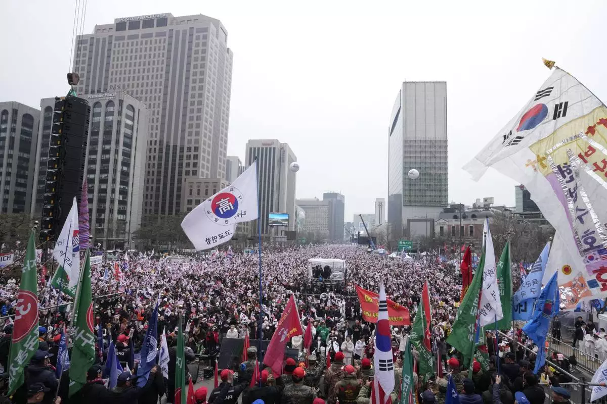 FILE - Supporters of impeached South Korean President Yoon Suk Yeol stage a rally to oppose his impeachment in Seoul, South Korea, on March 1, 2025. (AP Photo/Ahn Young-joon, File)