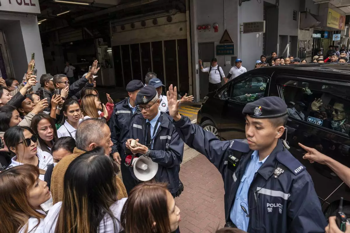 Supporters of former populist President of the Philippines Rodrigo Duterte waits for his arrival at a thanksgiving gathering organized by Hong Kong-based Filipino workers as Filipino actor, Robin Padilla arrives in a car in Hong Kong on Sunday, March 9, 2025. (AP Photo/Vernon Yuen)