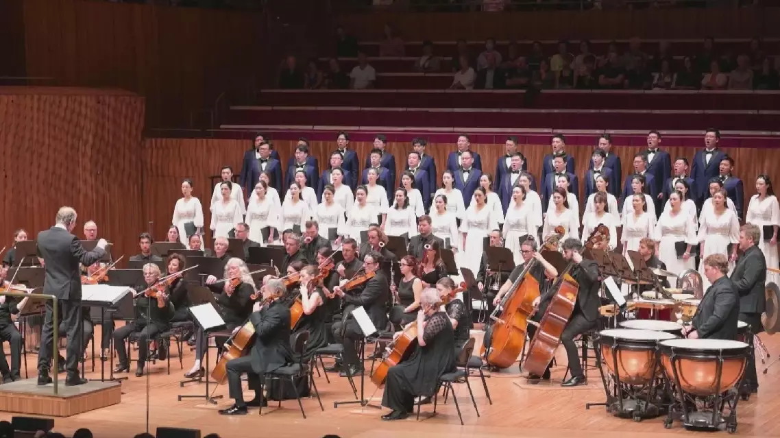 The China National Symphony Orchestra Chorus, hailed as one of the nation's finest, captivated audiences on Monday with their stirring rendition of the Yellow River Cantata, performed alongside an Australian symphony orchestra.