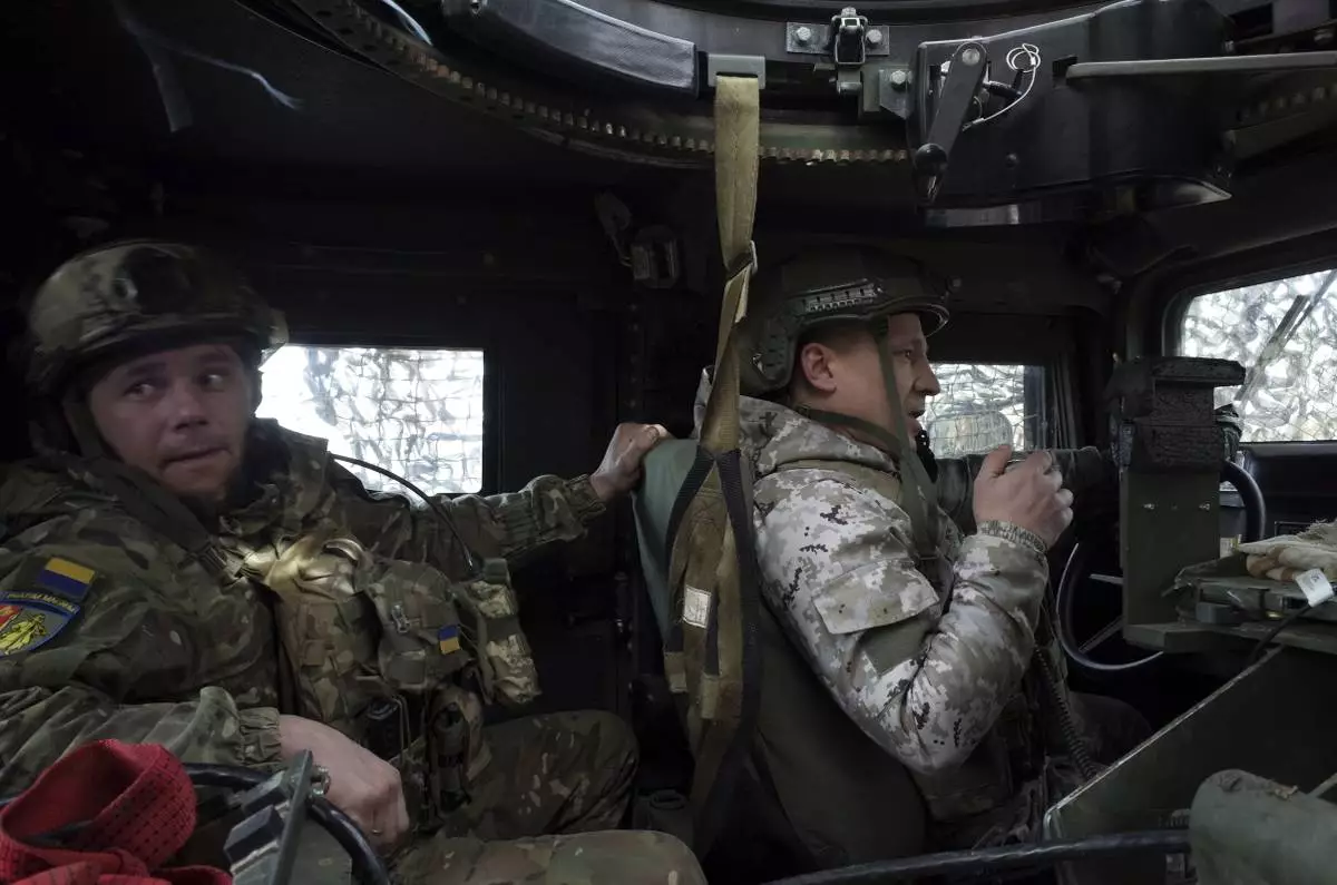 In this photo provided by Ukraine's 65th Mechanised Brigade press service, Ukrainian servicemen drive the US Humvee on the frontline in the Zaporizhzhia region, Ukraine, Thursday, March 6, 2025, (Andriy Andriyenko/Ukraine's 65th Mechanised Brigade via AP)