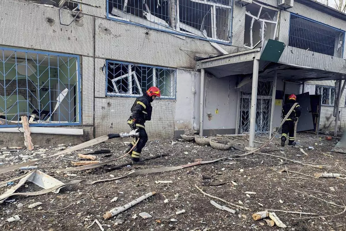 In this photo provided by the Ukrainian Emergency Service, firefighters work on the site of a damaged building after a Russian missile hit the area, in Kryvyi Rih, Ukraine, Wednesday, March 12, 2025. (Ukrainian Emergency Service via AP)