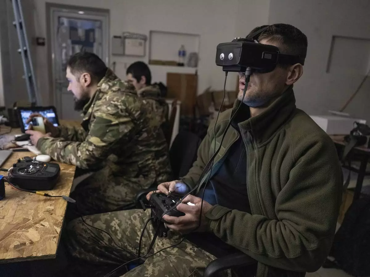 In this photo provided by Ukraine's 93rd Kholodnyi Yar Separate Mechanized Brigade press service, Ukrainian soldiers control FPV drones from a shelter in Pokrovsk, the site of heavy battles with Russian troops in the Donetsk region, Ukraine, Sunday, March 9, 2025. (Iryna Rybakova/Ukraine's 93rd Mechanized Brigade via AP)