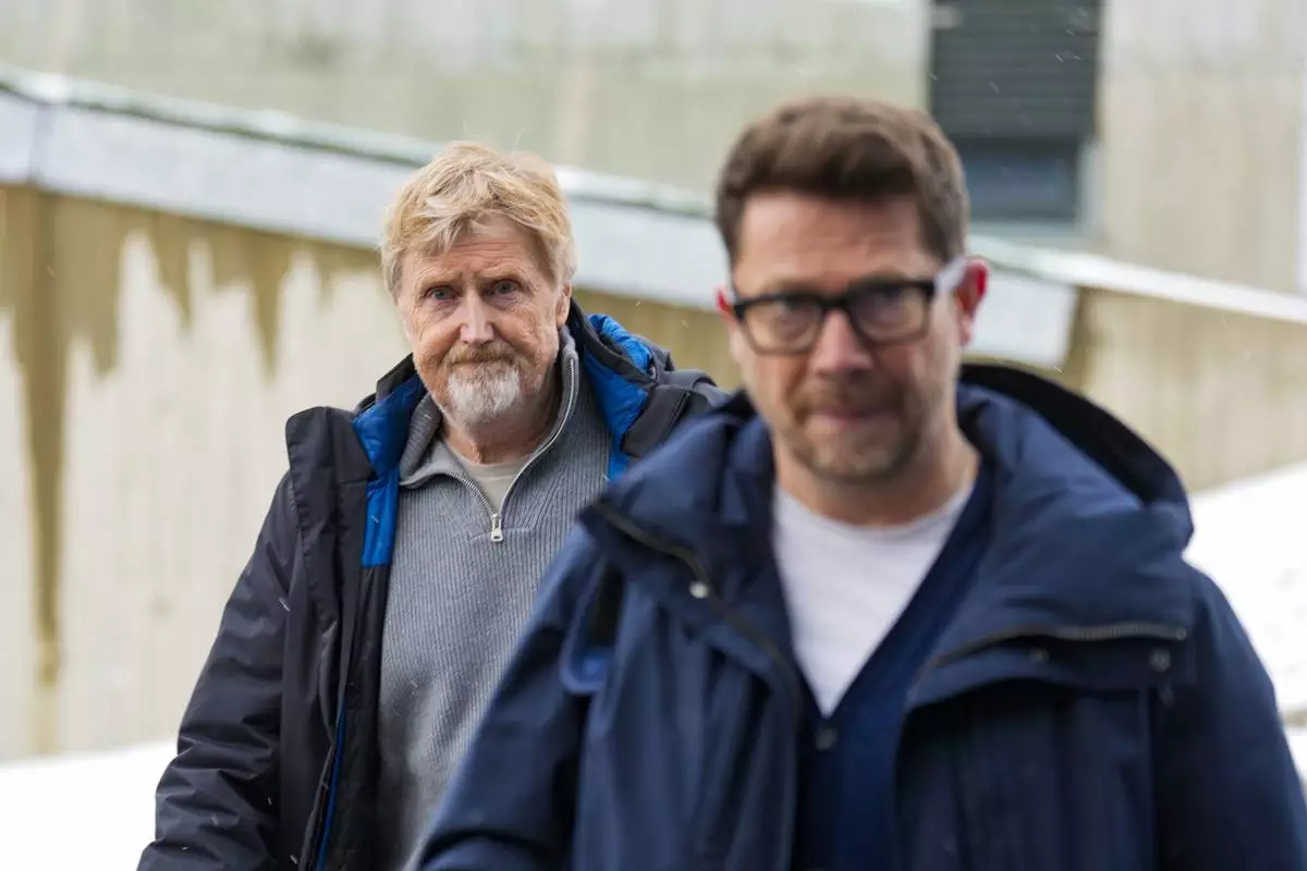 Ski jump manager of the Norwegian Ski Federation Jan-Erik Aalbu, left, and Head of communications of the Norwegian Ski Federation Espen Graff arrive for a news conference after the ski jump scandal, in Holmenkollen, Oslo, Norway, Tuesday March 12, 2025. (Heiko Junge/NTB Scanpix via AP)