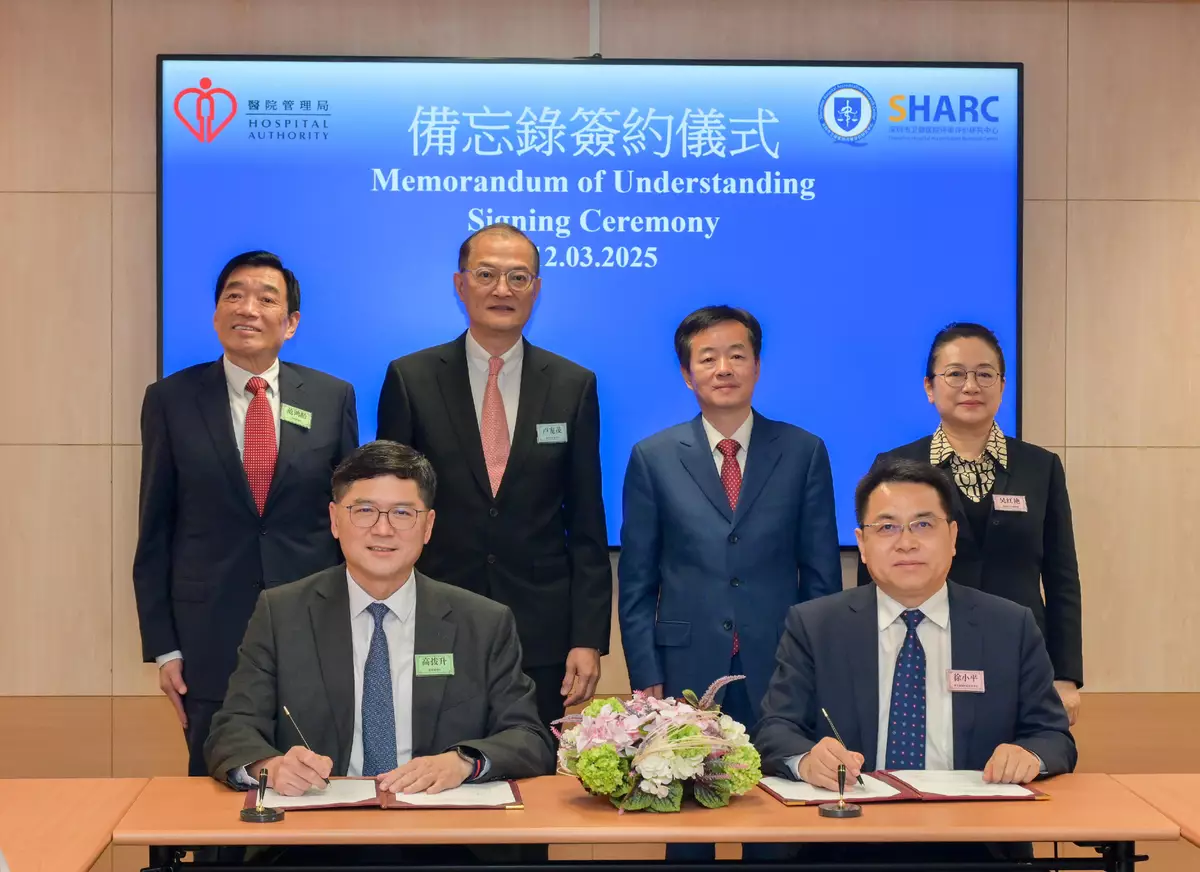 Professor Lo then had a meeting with Mr Chen to exchange views on medical and healthcare co-operation between Hong Kong and Shenzhen, and to explore ways to further promote the development of the accreditation under the Standards. After the meeting, Professor Lo and Mr Chen were joined by the Chairman of the Hospital Authority (HA), Mr Henry Fan, and the Director General of the Public Hygiene and Health Commission of Shenzhen Municipality, Ms Wu Hongyan, who were also present at the meeting, to witness the signing of the "Memorandum of Understanding on Cooperation of Promoting International Accreditation for Hong Kong Public Hospitals in 2025" (MOU) by the Chief Executive of the HA, Dr Tony Ko, and the President of the Shenzhen Hospital Accreditation Research Center (Center), Mr Xu Xiaoping.