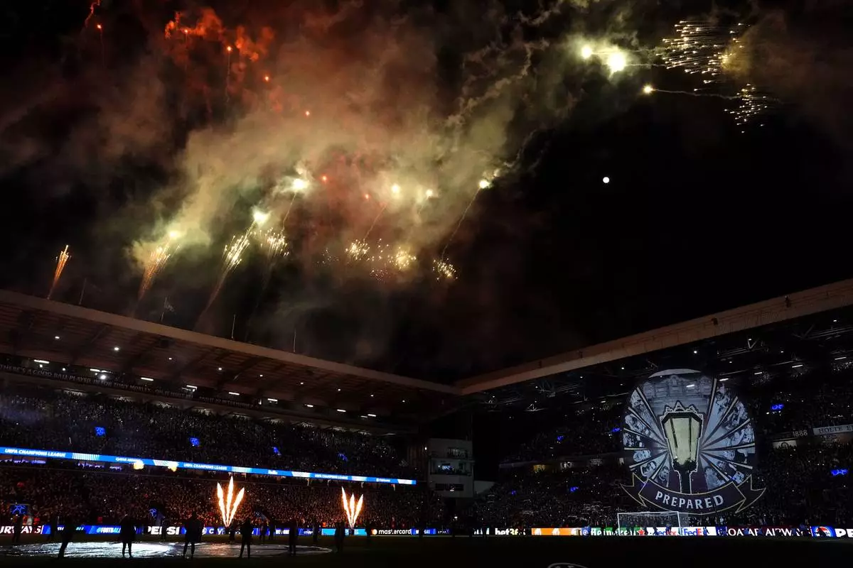 Fireworks explode over Villa Park before the Champions League round of 16 second leg soccer match between Aston Villa and Club Brugge at the Villa Park stadium in Birmingham, England, Wednesday, March 12, 2025. (Nick Potts/PA via AP)