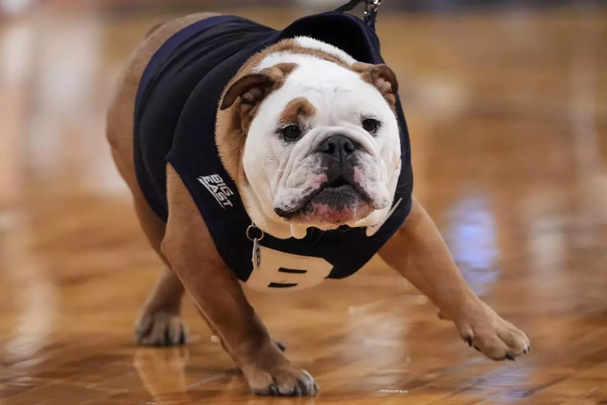 Butler mascot, Butler Blue IV, stands on the court during the first half of an NCAA college basketball game against Providence at the Big East basketball tournament Wednesday, March 12, 2025, in New York. (AP Photo/Frank Franklin II)