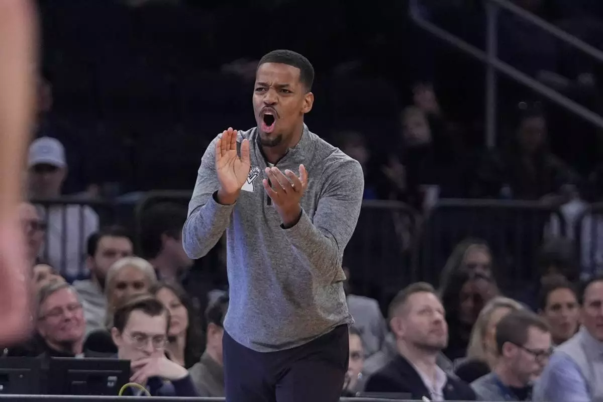 Providence head coach Kim English calls out to his team during the first half of an NCAA college basketball game against Butler at the Big East basketball tournament Wednesday, March 12, 2025, in New York. (AP Photo/Frank Franklin II)