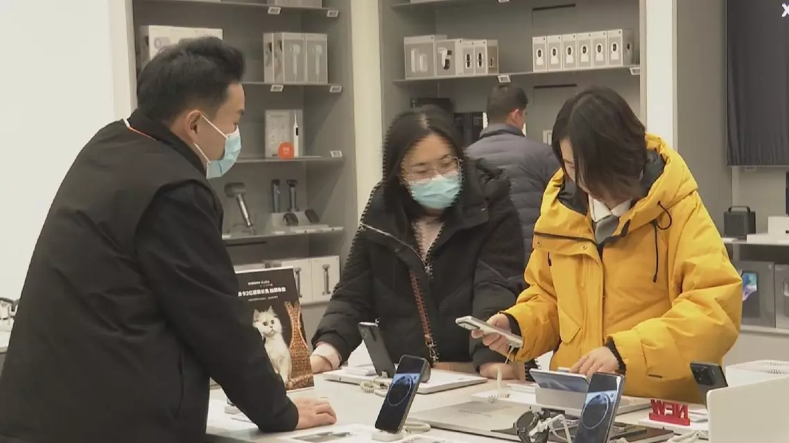 In Qingdao City of east China's Shandong Province, sales have boomed for digital products, after mobile phones, tablets and other "3C" products, or computer, communication and consumer electronics, became eligible for trade-in subsidies.