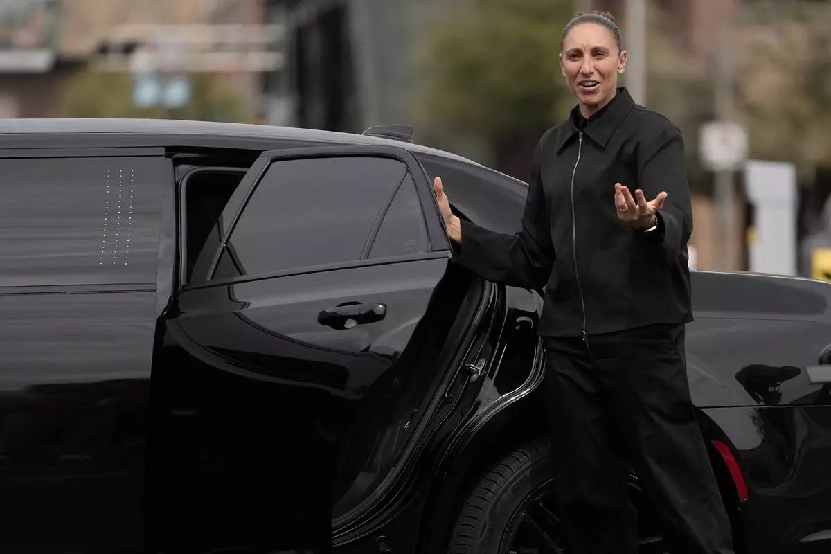 Former Phoenix Mercury player Diana Taurasi arrives for her retirement news conference, Thursday, March 13, 2025, in Phoenix. (AP Photo/Matt York)