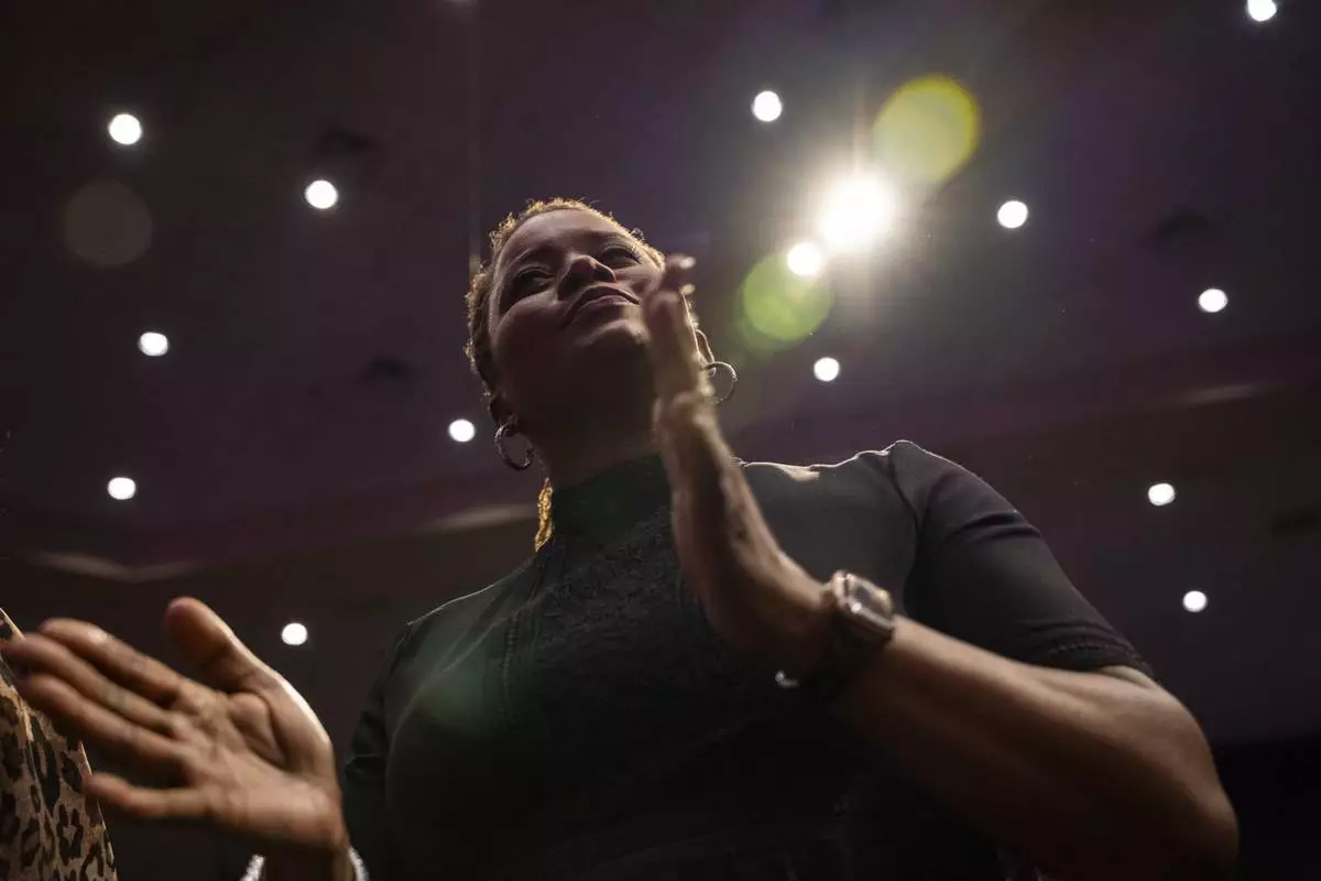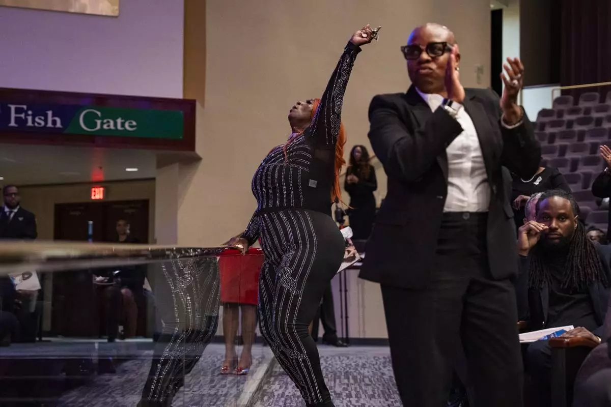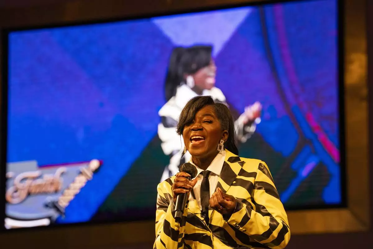 Keke Wyatt performs at the memorial service for singer and actress Angie Stone, Friday, March 14, 2025, in Austell. Ga. (AP Photo/Olivia Bowdoin)