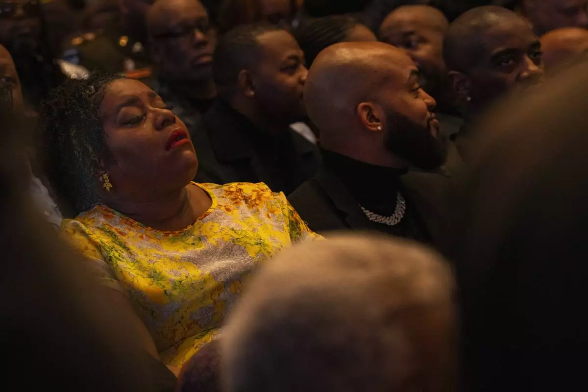 “In her song No More Rain (In This Cloud),'” she says my sunshine is coming, and I’m all cried out,” filmmaker and entertainment executive Tyler Perry said at Friday's service.