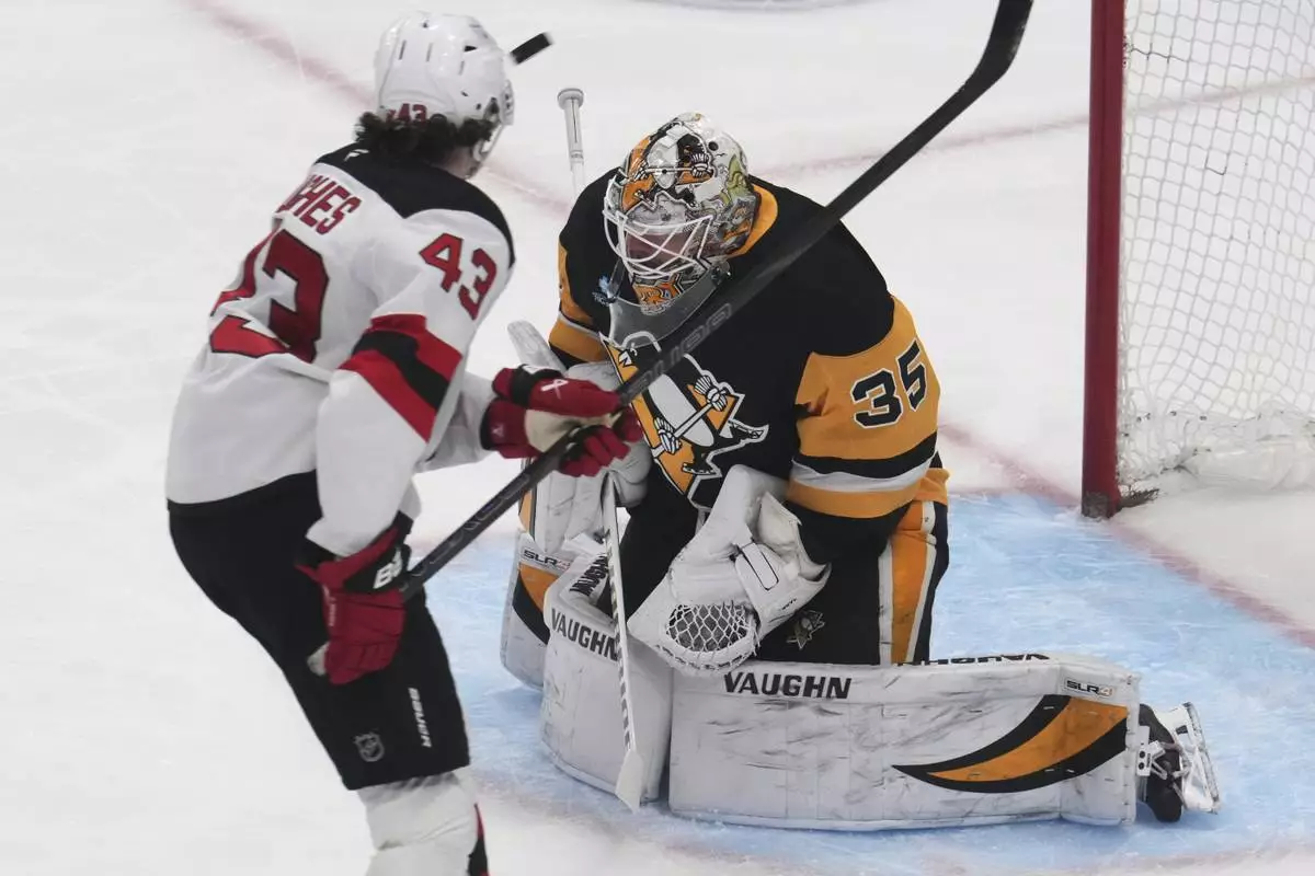 Karlsson’s power-play goal gave Pittsburgh needed insurance. Meier and Hischier scored power-play goals earlier in the period for New Jersey, which turned a 4-1 hole into a one-goal deficit.