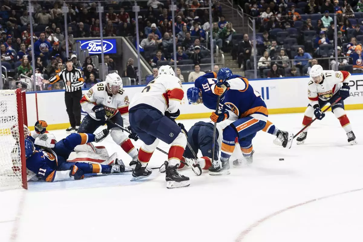 During a mad scramble in the closing seconds, Sorokin stopped several attempts, losing his blocker in the process, to keep the Islanders ahead.