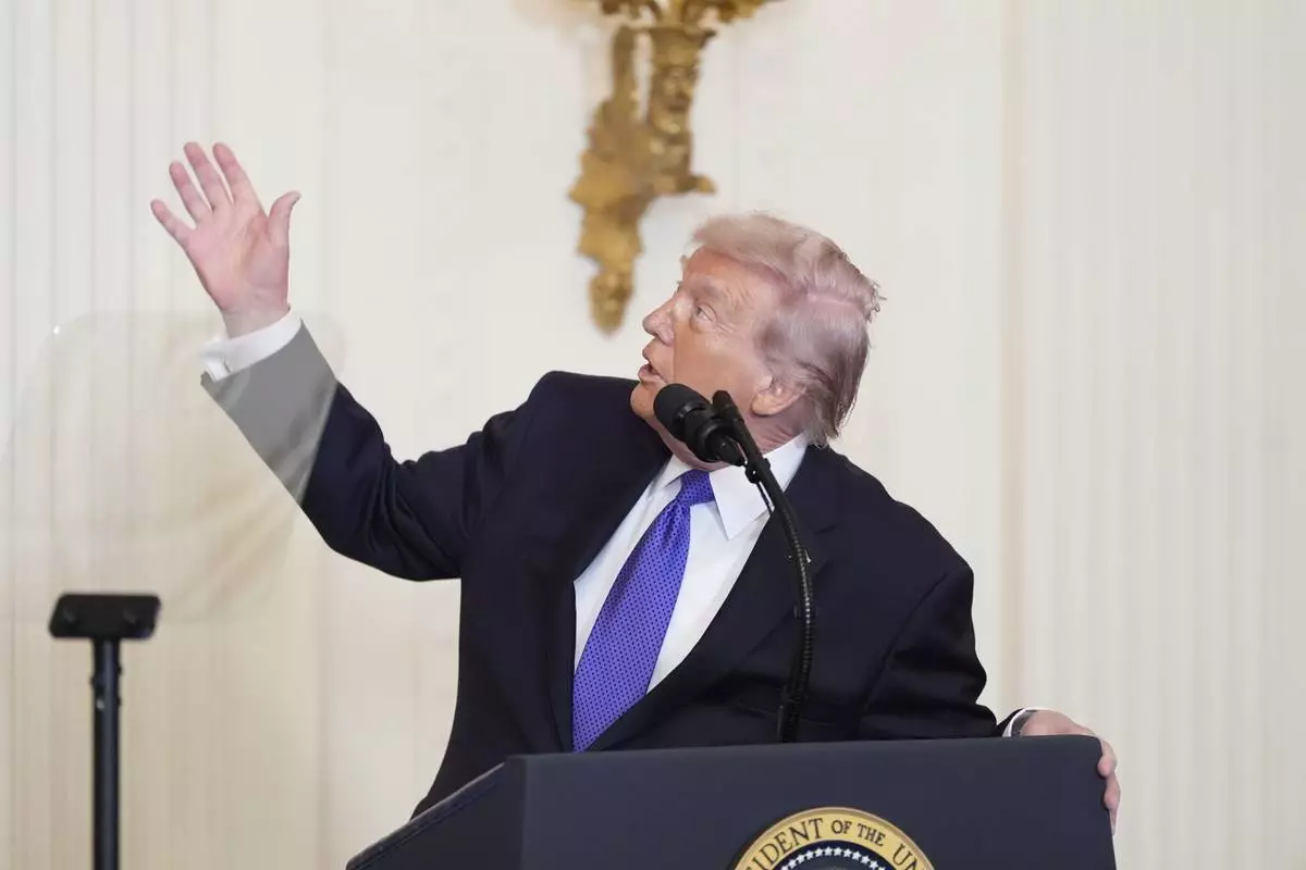 President Donald Trump speaks about the new ballroom construction before a Medal of Honor ceremony in the East Room of the White House, Monday, March 2, 2026, in Washington. (AP Photo/Alex Brandon)