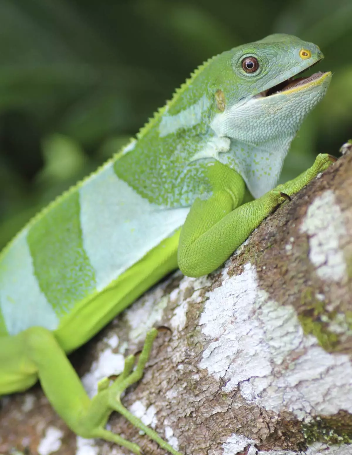 A green Central Fijian Banded Iguana is shown on Ovalau in Fiji. (Robert Fisher/U.S. Geological Survey via AP)