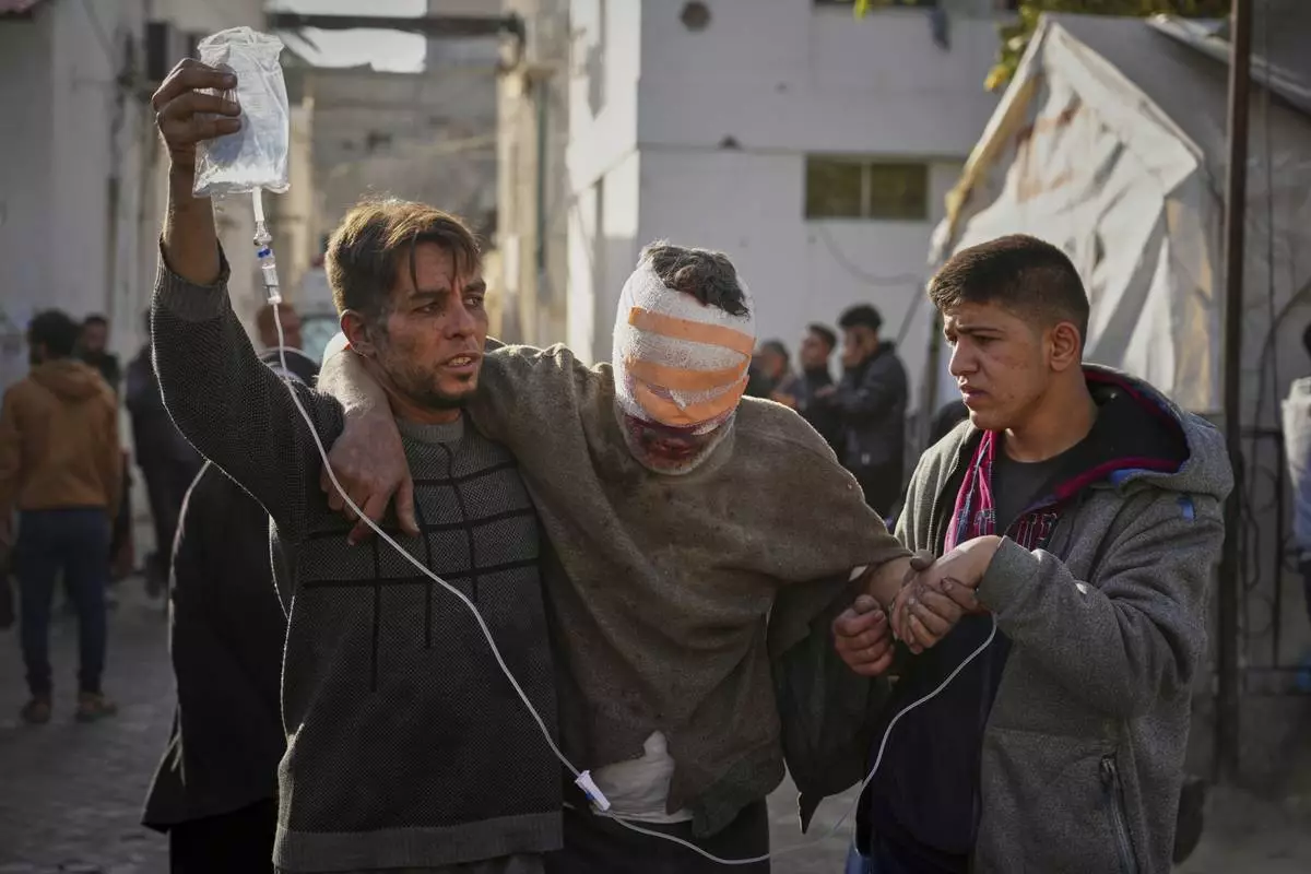 An injured man is take to the Al-Ahli hospital following Israeli army overnight airstrikes across the Gaza Strip, in Gaza City, Tuesday, March 18, 2025. (AP Photo/Jehad Alshrafi).