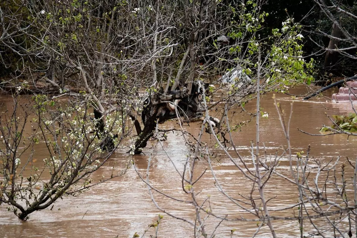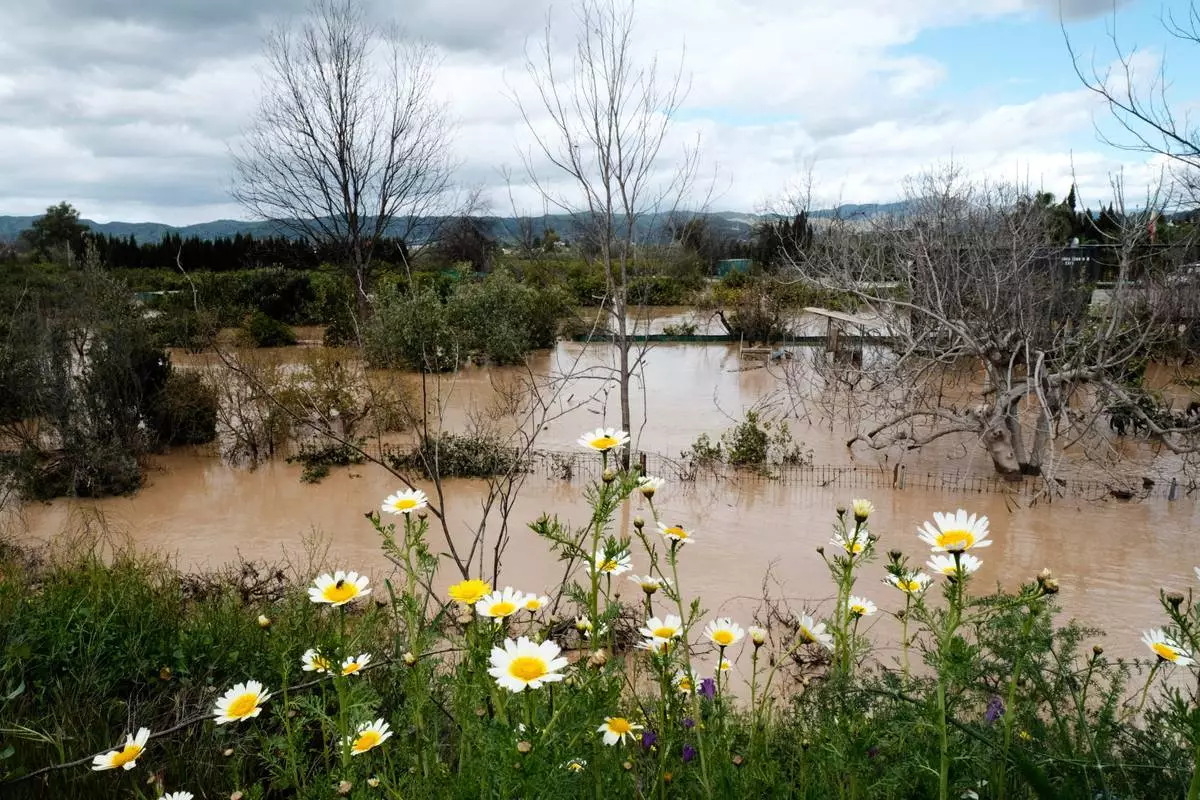 Farmland and properties are photographed flooded after heavy rains in Malaga, Spain, Tuesday, March 18, 2025. (AP Photo/Gregorio Marrero)