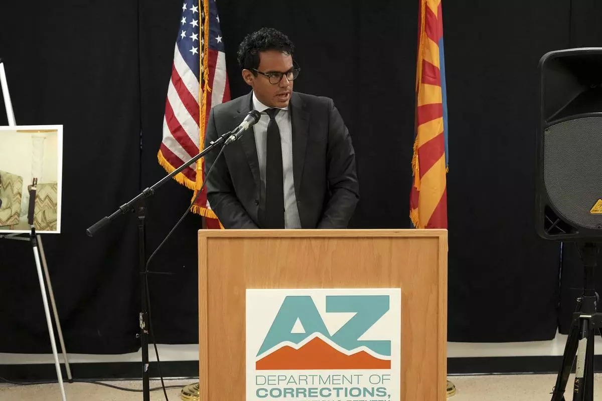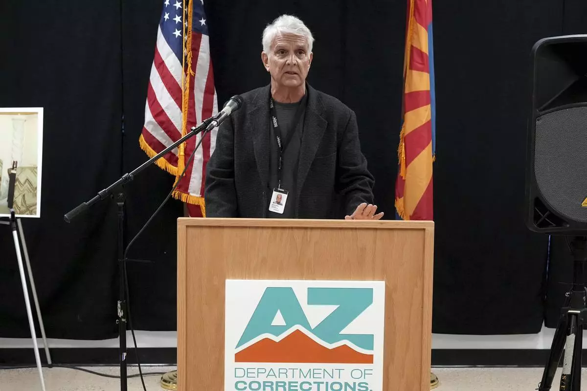 ADCRR Deputy Director John Barcello speaks about the execution of inmate Aaron Brian Gunches at the Arizona State Prison Wednesday, March 19, 2025 in Florence, Ariz. (AP Photo/Darryl Webb)