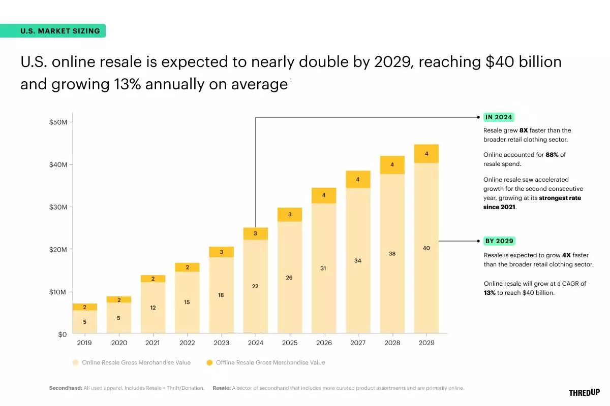 ThredUp (Nasdaq: TDUP, LTSE: TDUP), one of the largest online resale platforms for apparel, shoes, and accessories, today released the results of its 2025 Resale Report. Conducted by third-party retail analytics firm GlobalData, the 13th annual study serves as the most comprehensive measure of the secondhand market globally and in the U.S., with forward looking projections through 2034. It also includes new insights about tariff and trade implications, how social commerce and AI are reshaping retail, and the government’s role in managing textile waste. The report’s findings are based on market sizing and growth estimates from GlobalData, a survey of 3,034 U.S. consumers over the age of 18, and a survey of 50 top U.S. fashion retailers and brands.