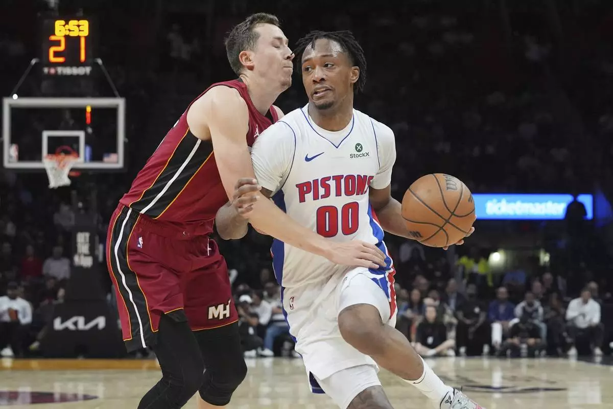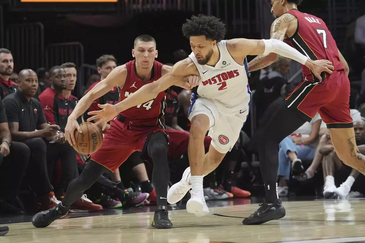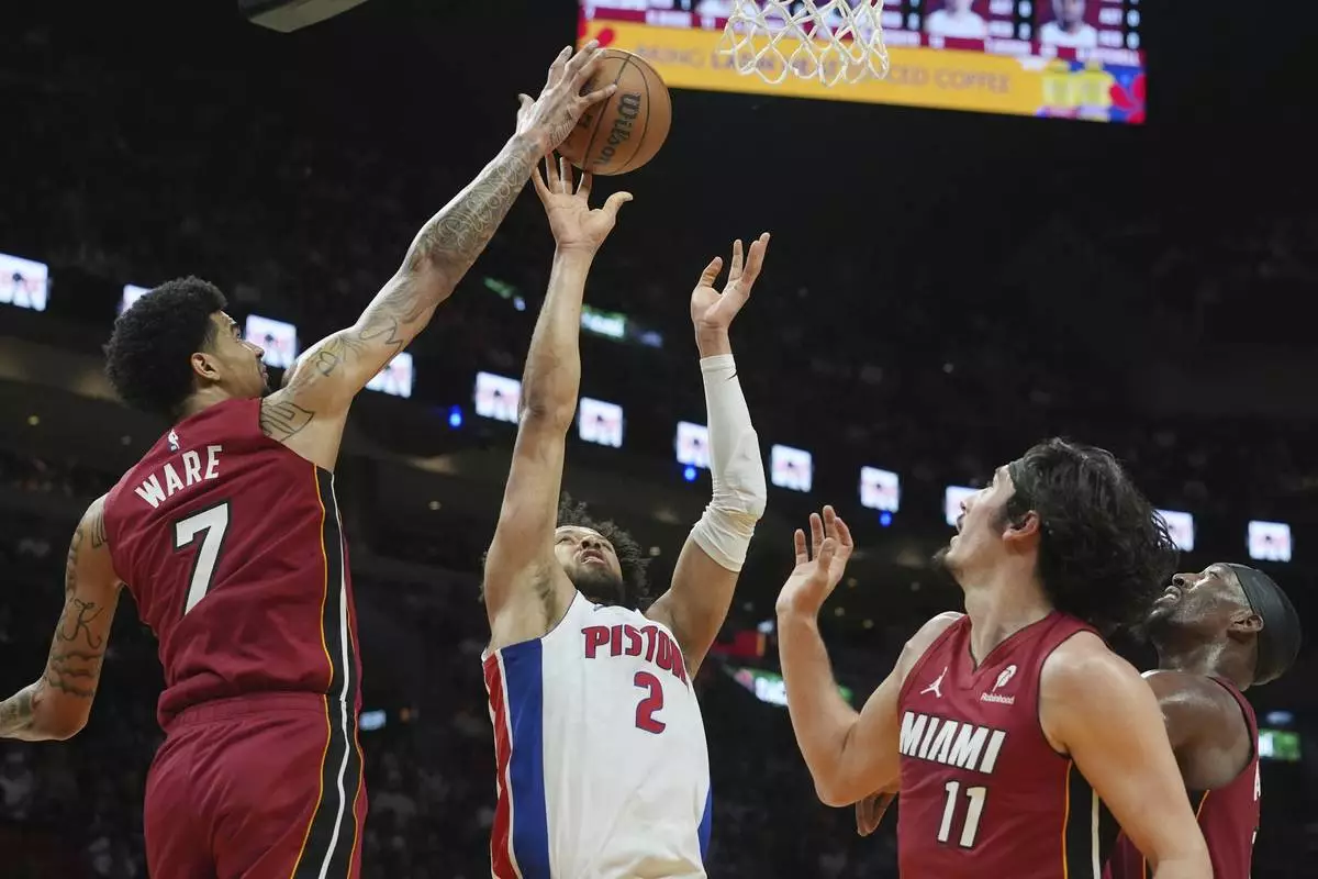 MIAMI (AP) — Cade Cunningham banked in a 3-pointer with less than a second remaining, giving the Detroit Pistons a 116-113 win over Miami on Wednesday night and sending the Heat to their ninth consecutive loss.