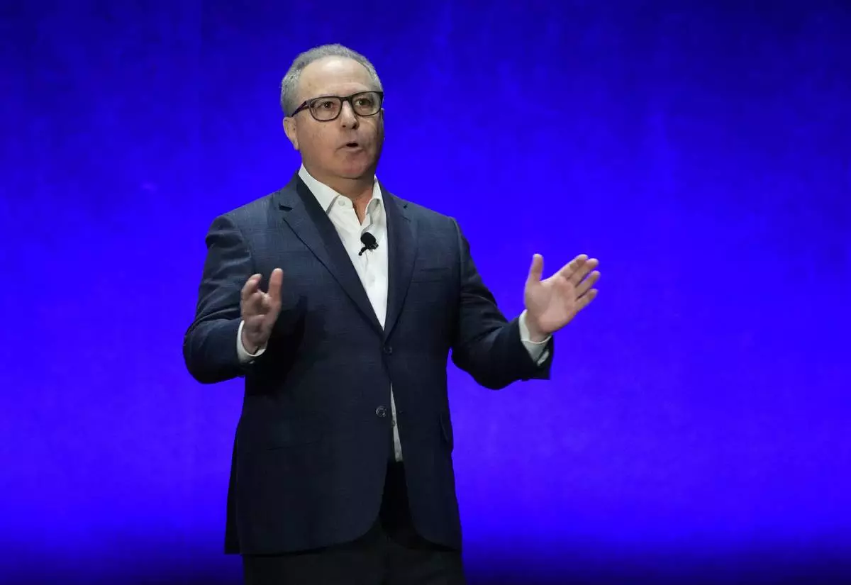 FILE - Alan Bergman, co-chairman of Disney Entertainment, addresses the audience during the Walt Disney Studios presentation at CinemaCon 2023, the official convention of the National Association of Theatre Owners (NATO) at Caesars Palace, Wednesday, April 26, 2023, in Las Vegas. (AP Photo/Chris Pizzello, File)