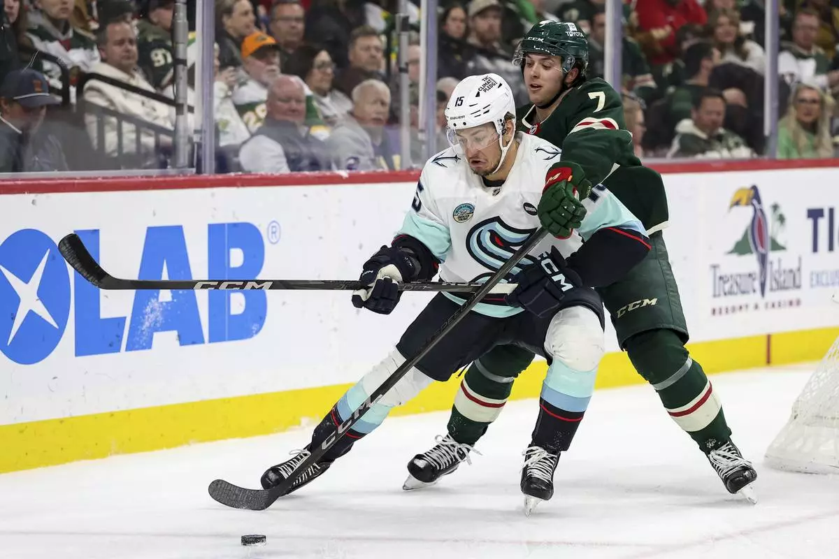 ST. PAUL, MInn. (AP) — Ryan Hartman, Matt Boldy and Liam Ohgren scored 1 minute, 42 seconds apart early in the first period and the Minnesota Wild beat the Seattle Kraken 4-0 on Wednesday night.