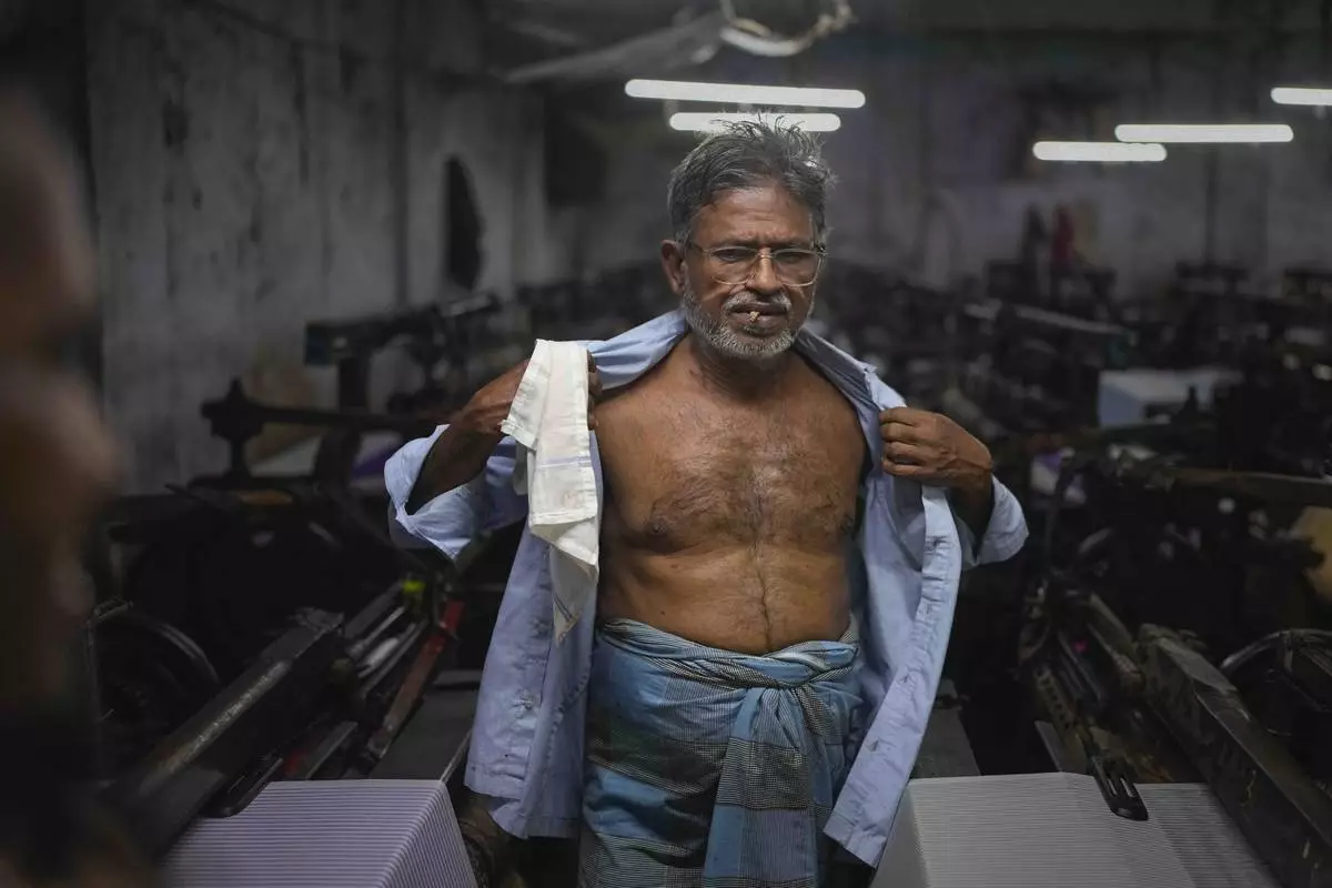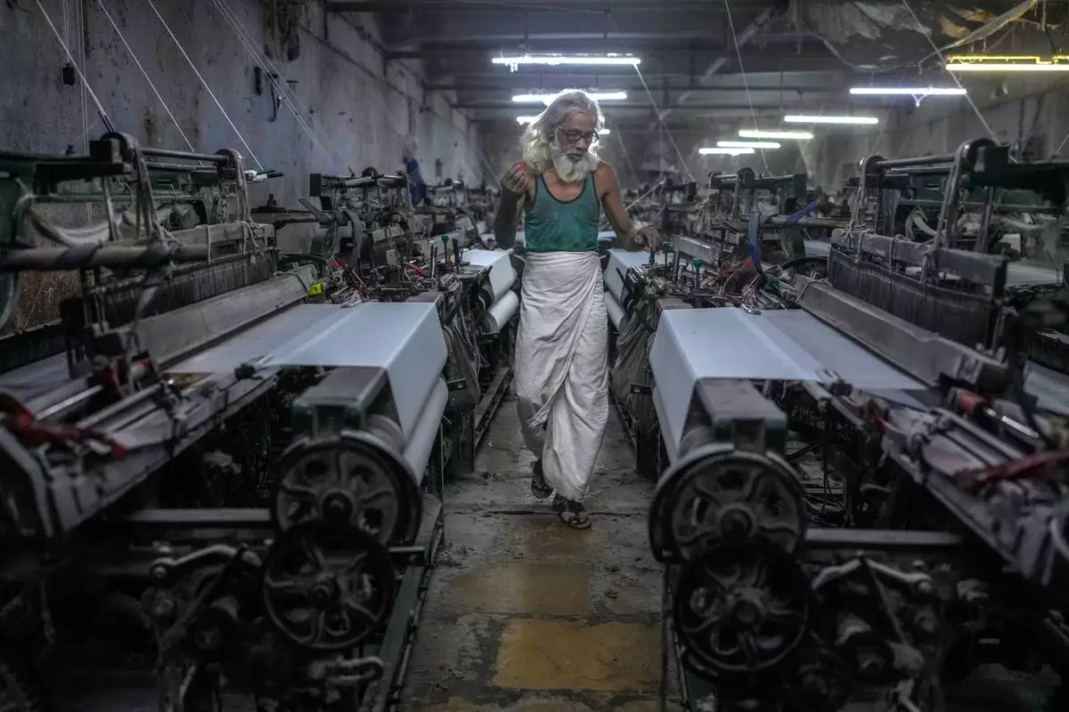 BHIWANDI, India (AP) — Abdul Sattar stands in a dimly lit aisle surrounded by dozens of electric-powered looms that make a rhythmic din several decibels above what is considered healthy for a human ear. With his flowing white beard and a wispy head of hair, he could be mistaken for a professor or a philosopher, but, at 70, he has spent most of his life working 12-hour shifts on power looms in poorly ventilated, noisy workshops.