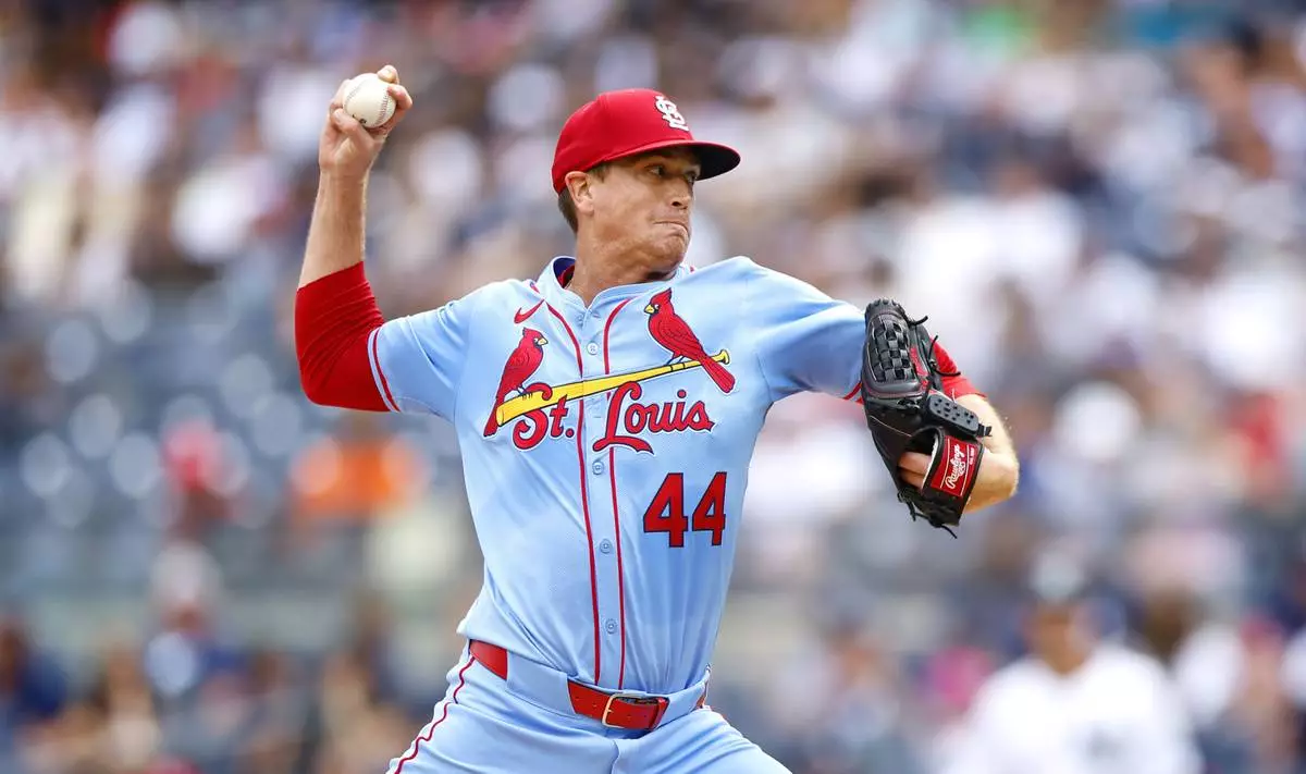 FILE - St. Louis Cardinals' Kyle Gibson (44) pitches against the New York Yankees during the first inning of a baseball game, Aug. 31, 2024, in New York. (AP Photo/Noah K. Murray, File)
