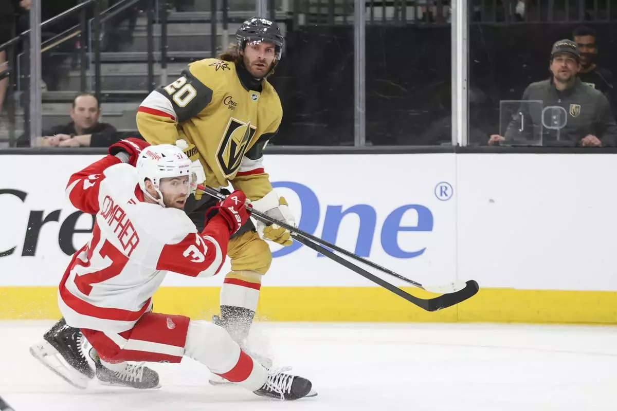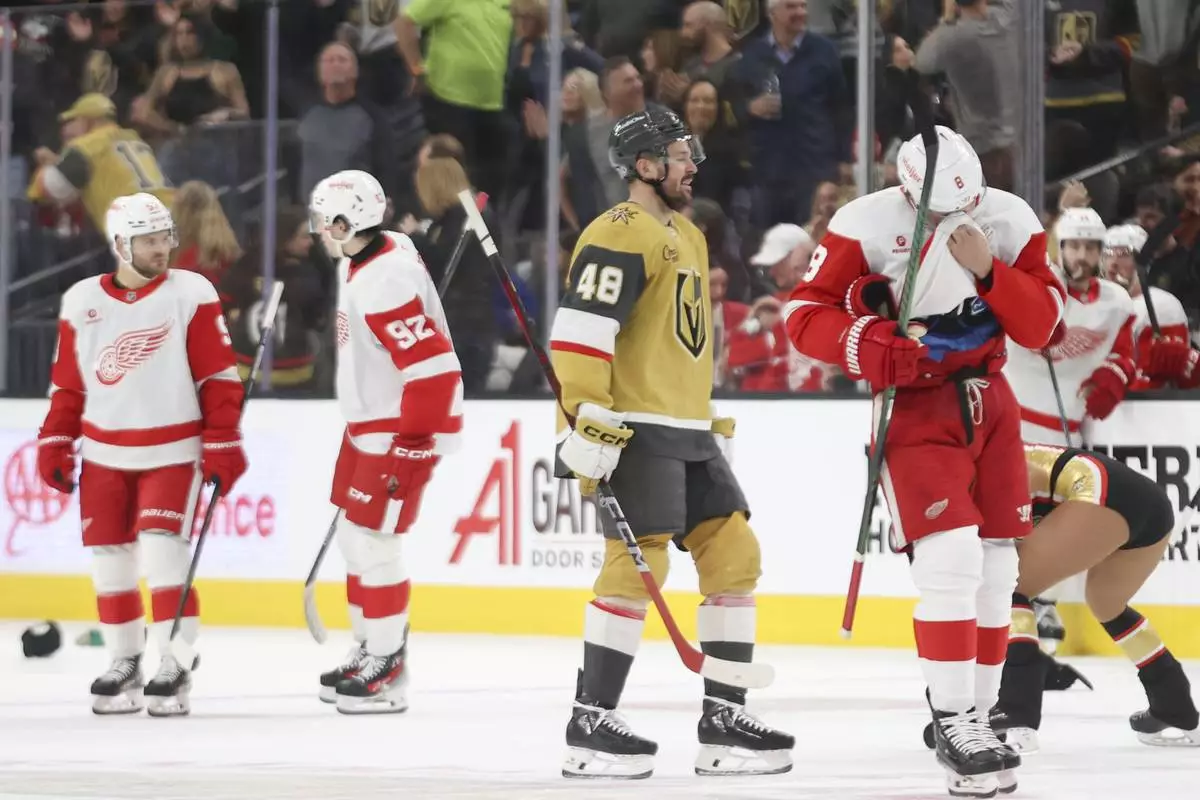 LAS VEGAS (AP) — Tomas Hertl scored his second hat trick this month and the Vegas Golden Knights knocked off the Detroit Red Wings 6-3 on Saturday night.