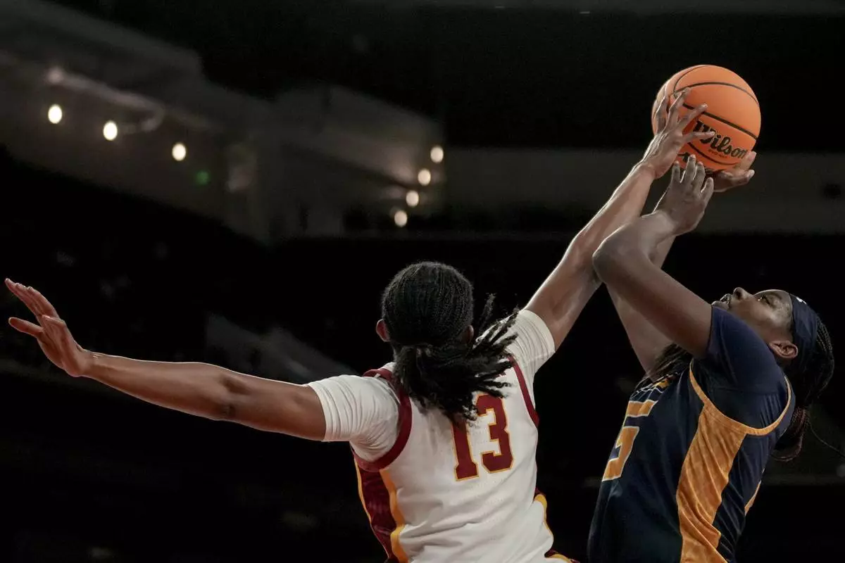 The Trojans blocked 10 shots against UNCG, led by Marshall with seven. They'll have to contend with 6-foot-6 Madina Okot, who had 14 points and 13 rebounds in a 59-46 win over California.